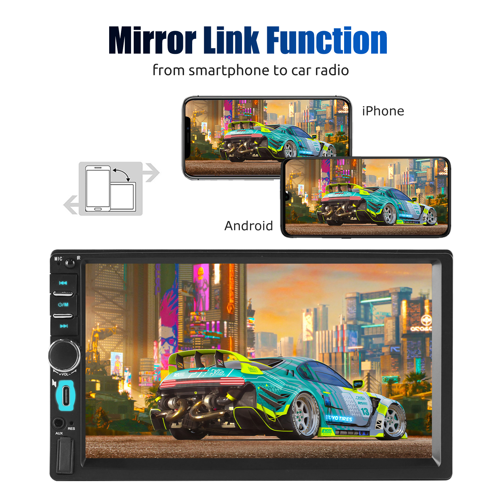 【7-Inch Double 2 Din Touchscreen Car Stereo】7-inch 1024x600 HD screen. Universal double DIN standard size 7 inch × 4 inch × 2.4 inch, suitable for most vehicles. Our double Din stereo is equipped with a 7-inch HD touchscreen, making it more sensitive and accurate.