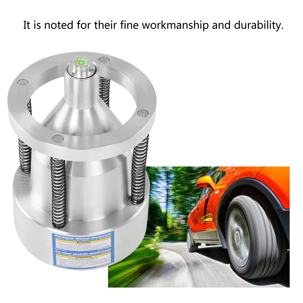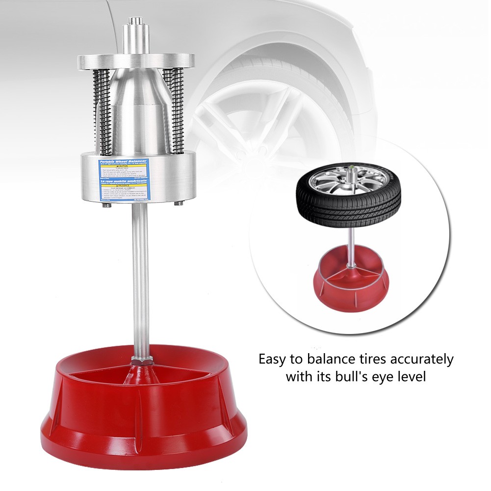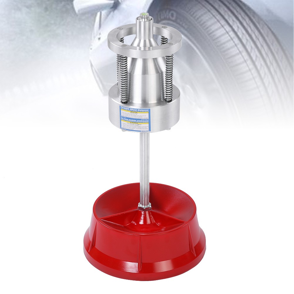Tragbarer Radwuchtapparat mit präziser Auswuchthilfe dank integrierter Wasserwaage.