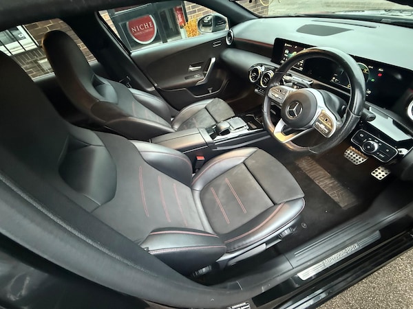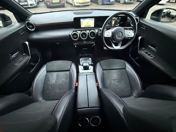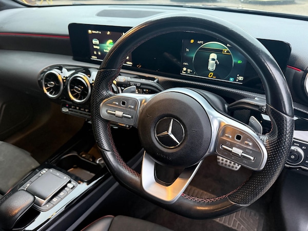 THIS IS A TWO OWNER VEHICLE FROM NEW THAT COMES WITH SERVICE HISTORY WITH 4 SERVICES DONE TO 91K AND LAST SERVICE DONE TO 91K IN JANUARY 2026 ALONG WITH A CURRENT MOT TILL 09/01/2026 AND A SPARE KEY IS PRESENTAMG LINE MODEL FOR NAV, , SAT NAVIGATION REVERSE CAMERA PARKING SENSORS BLUETOOTH PHONE PREP DAB DIGITAL RADIO FUNCTION CLIMATE CONTROL/AIR CONDITIONING METALLIC PAINT PRIVACY GLASS 18'' ALLOY WHEELS HALF LEATHER AND HALF SUEDE INTERIOR WITH RED STITCHING CRUISE CONTROL DAYTIME RUNNING LIGHTS KEY LESS START LANE ASSIST FUNCTION TRIP COMPUTER MULTI FUNCTION STEERING WHEEL PLUS MUCH MOREAuthorized and Regulated By The Financial Conduct Authority Approved Dealer for CAR FINANCE 247, MOTO NOVO & FIRST RESPONSE FINANCE Zero Deposit Finance Available All Cars HPI Clear with Verified Mileage 3 MONTHS WARRANTY DELIVERY Service Available Reserve Any Car with a £100 Refundable Holding Deposit Free Complimentary Collection from Local Airport and Train Stations Available Card Payments Accepted Open 7 Days Visit for our complete stock listDiscover this 2020 Mercedes Benz A Class A180d AMG Line, a sophisticated and efficient hatchback. This Euro 6 compliant model boasts a 1.5 litre diesel engine, offering an impressive fuel economy of up to 63 miles per gallon. The AMG Line trim enhances its sporty appeal, while practical features like the THERMOTRONIC luxury automatic climate control ensure a comfortable cabin environment. Navigating tight spots is made easier with the 180 degree reversing camera and parking guidelines, and the automatic headlamp activation provides convenience in varying light conditions. For connectivity, it features a dual Bluetooth interface with two USB Type C ports.
