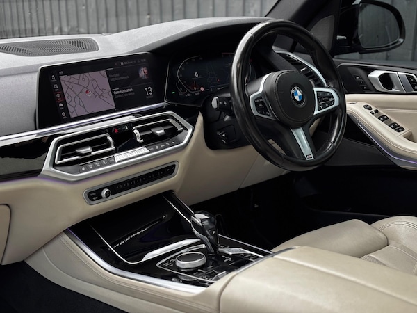 This 2019 BMW X5 30d M Sport offers a compelling blend of performance and luxury, boasting a powerful 3.0L diesel engine and a sophisticated four wheel drive system for assured handling in all conditions. As a Euro 6 compliant vehicle, it meets stringent emission standards. This M Sport variant is equipped with striking 22 inch M Light Double Spoke Style 742 M Bicolour alloy wheels and a Sky Lounge panoramic glass sunroof that includes an opening function, flooding the cabin with natural light. The Technology Package enhances the driving experience with a Head Up Display, a comprehensive 360 degree camera system for effortless parking, and a premium branded sound system. Inside, the cabin is appointed with elegant BMW Individual Piano Black interior trim, and convenience is further elevated by enhanced Bluetooth telephone preparation with wireless phone charging.The BMW X5 30d M Sport stands out with its impressive acceleration, reaching 0 to 62mph in just 6.5 seconds, demonstrating its dynamic capabilities. This model also benefits from a low insurance group, making it a more economical choice for many drivers. Furthermore, the generous boot space provides ample room for luggage, shopping, or sports equipment, highlighting its practicality for everyday use and longer journeys. These features collectively indicate that this X5 offers a superior driving and ownership experience compared to other vehicles in its class.