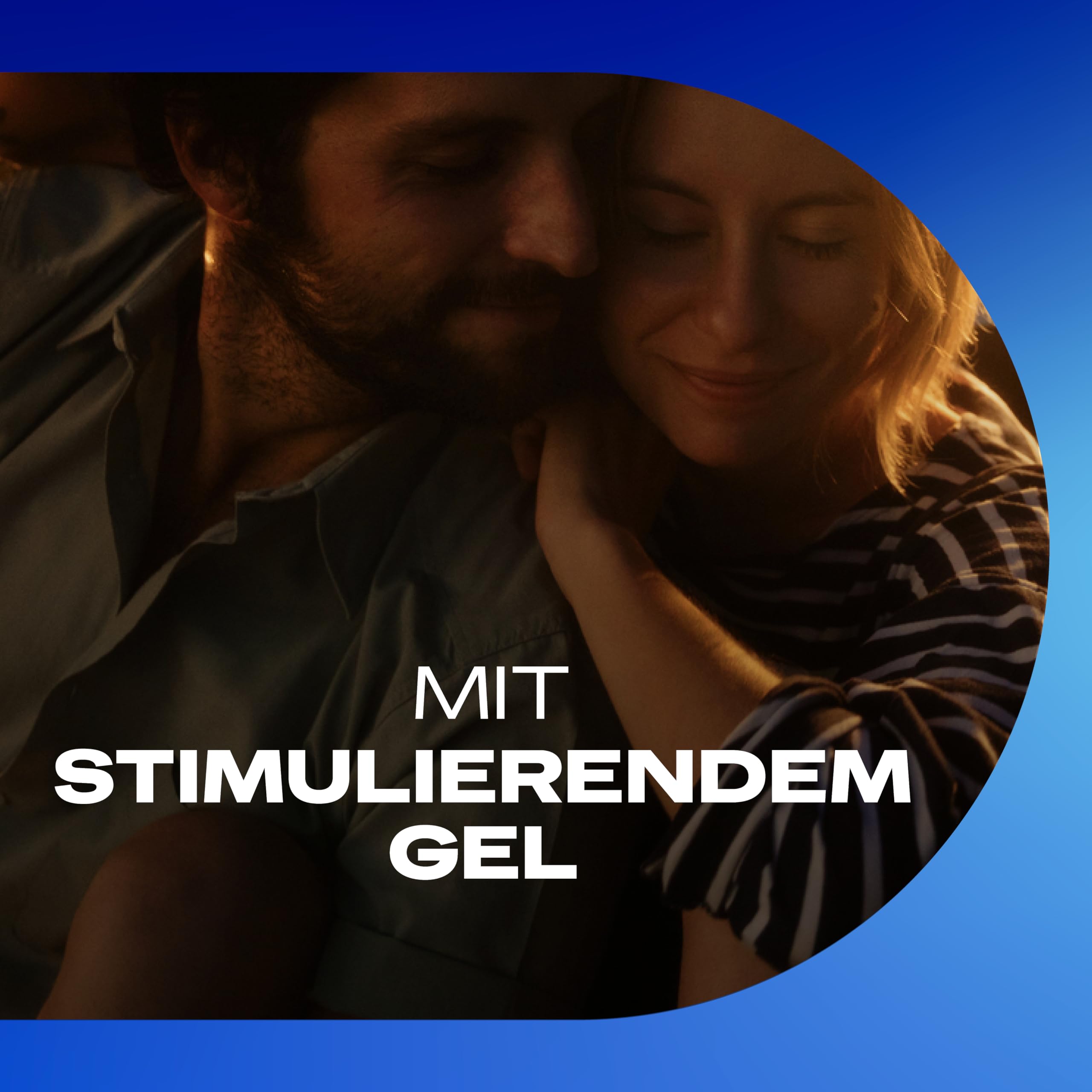 EXTRA FEUCHT FÜR MEHR SPASS: Die Präservative aus Naturkautschuklatex sind mit extra viel Desirex-Stimulationsgel befeuchtet, für stimulierende Effekte und hervorragende Gleitfähigkeit
