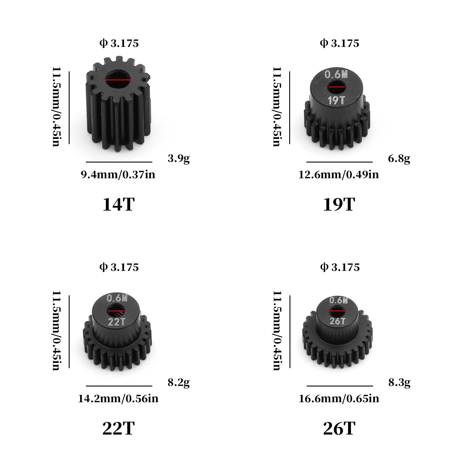14/19/22/26T Teeth Motor Gear