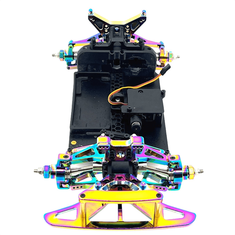 Specifications: Front Bumper / Front Body Mounting Bracket / Front & Rear Arm Mounts / Front & Rear Shock Mounts / Front Lower Control Arm / Front Upper Control Arm / Front Steering Cup / Front Steering Assembly / Front Tie Rod / Rear Lower Control Arm / Rear Upper Control Arm / Rear Cup / 12mm Coupler