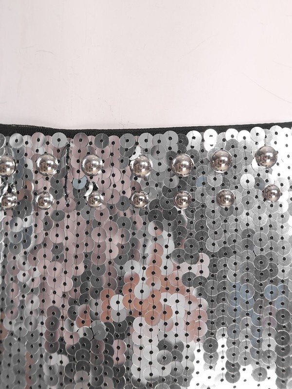 The all-over sequins give the skirt a glittery and eye-catching look, making you stand out in any crowd, which is a trendy element for fashion-forward individuals.