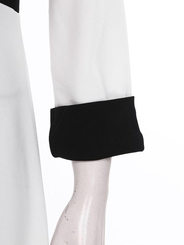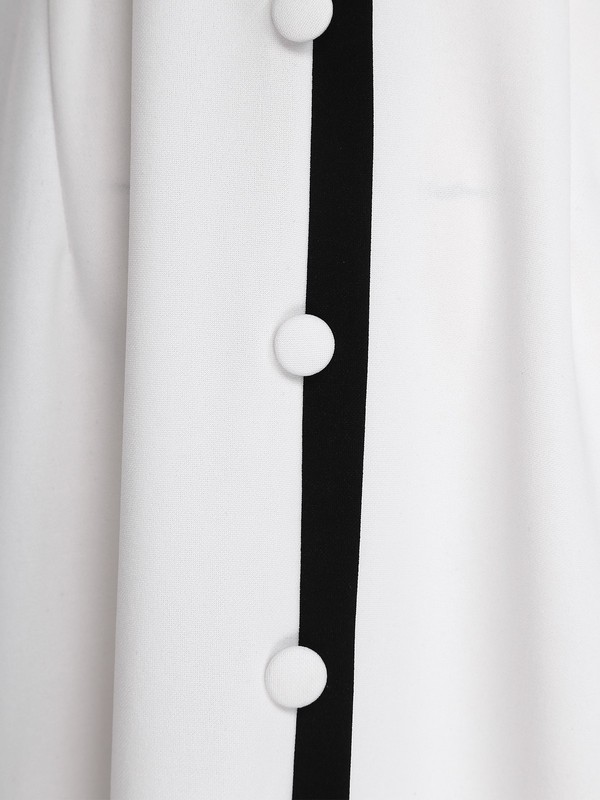 The color-blocking design of white and black is both elegant and on-trend, creating a bold and fashionable look that stands out.
