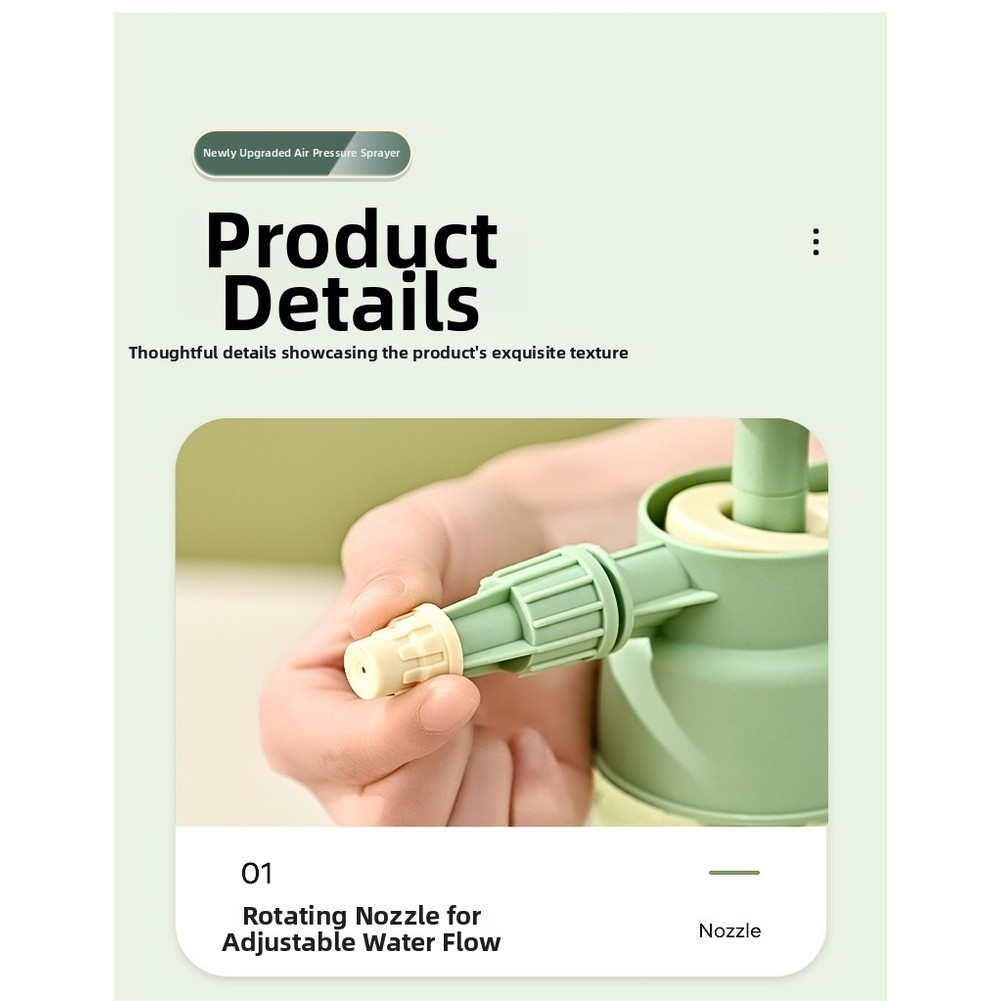 * Verstellbare Düse: Verfügt über einen rotierenden Sprühkopf zum einfachen Umschalten zwischen Nebel- und Strahlmodus für einen vielseitigen Einsatz.