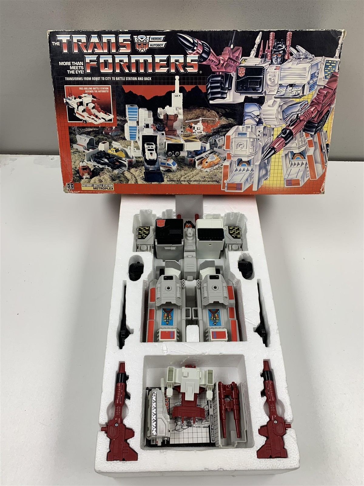 Condition Notes: The figure is clean with original stickers applied. All transformations—from Giant Robot to Battle Station to Autobot City—are smooth and functional. The box displays the legendary 1986 battle art beautifully, though it does show the expected edge wear and creases of a 40-year-old original.