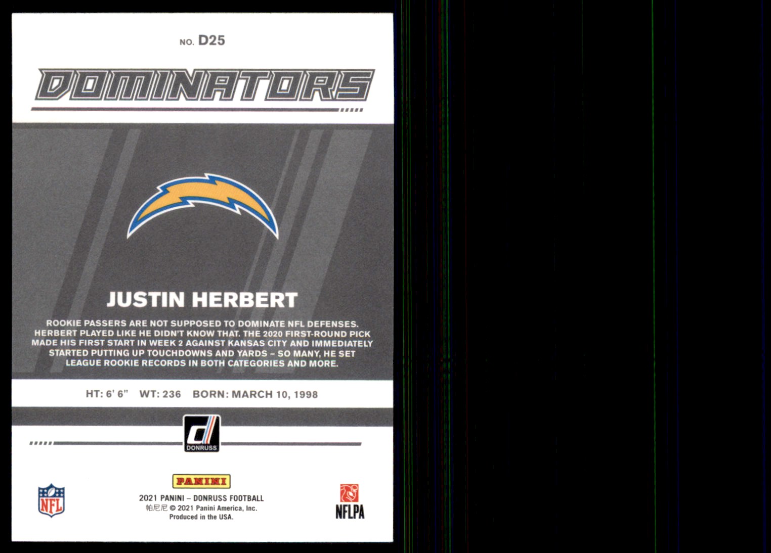 | 2021 Donruss Dominators Justin Herbert Los Angeles Chargers #D25 | ||||||||||||||||