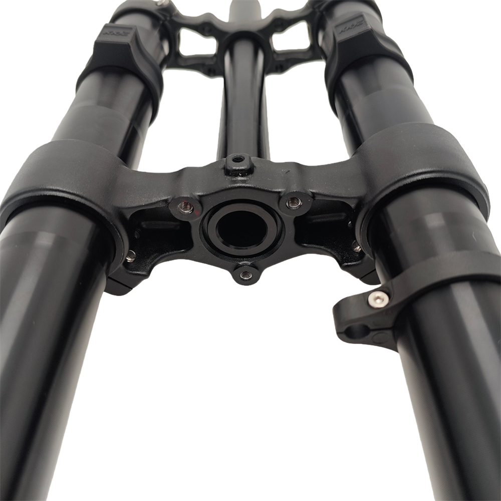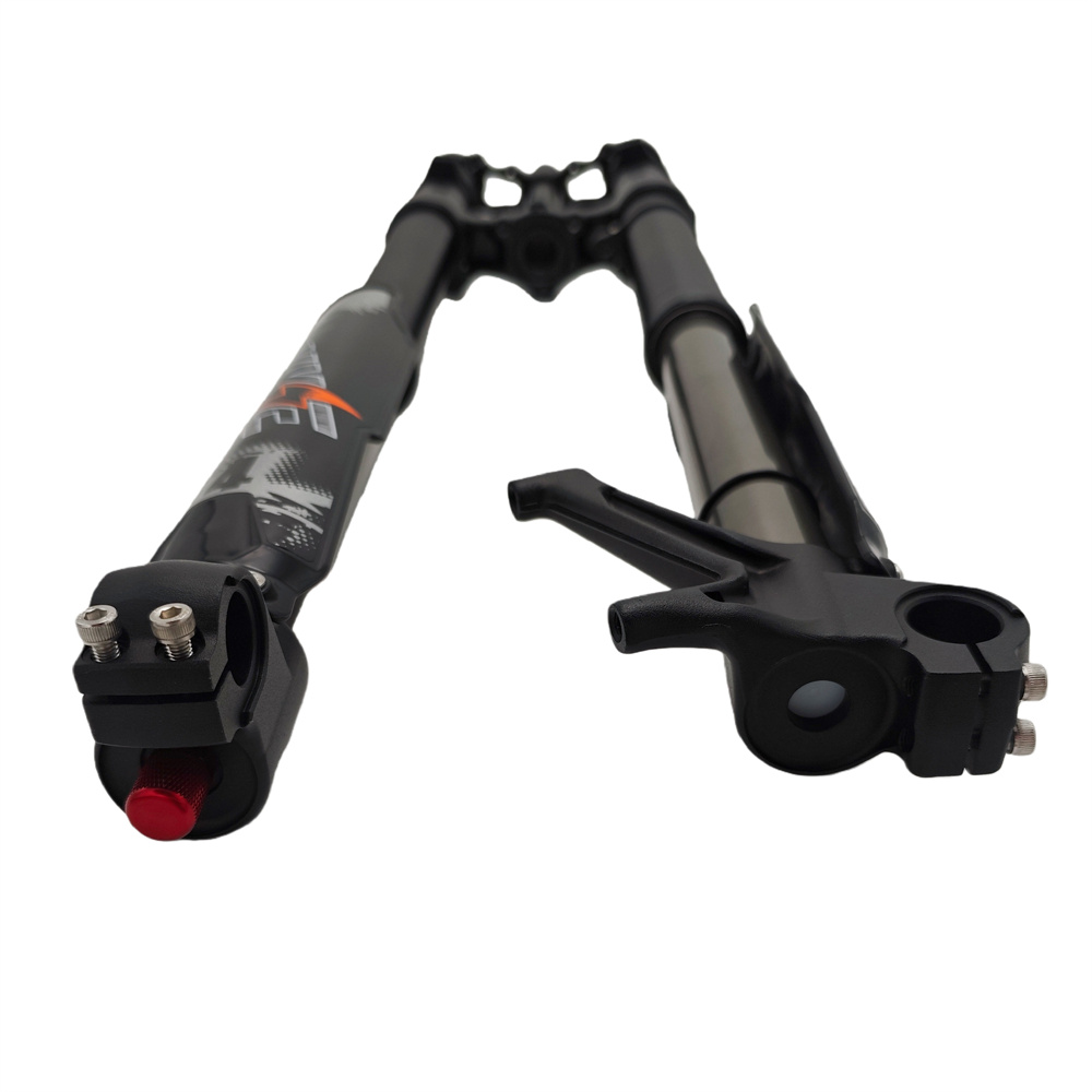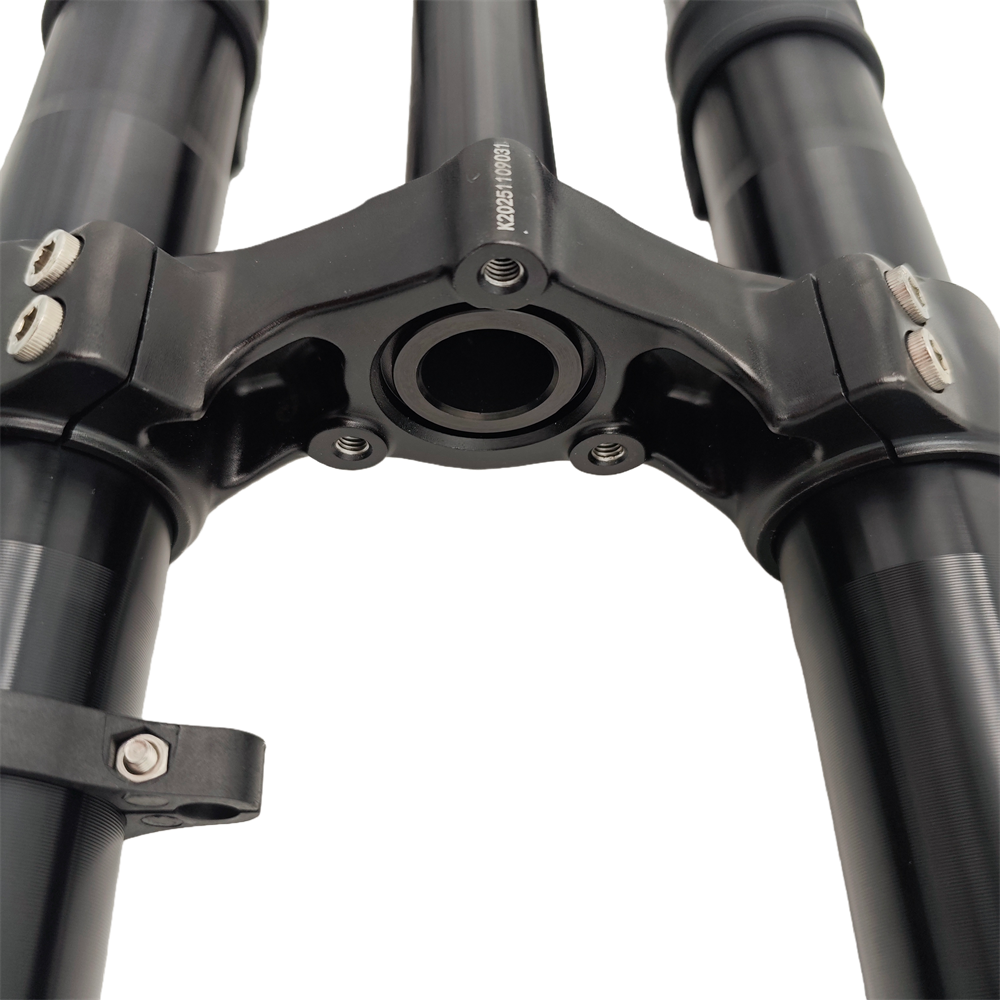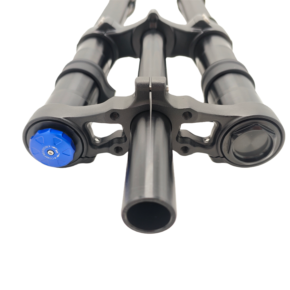 The KKE Fork is compatable with all Surron/Talaria/Stealth Bomber/Ebike/MTBs. This is a complete fork suspension system designed for Ebikes motorcycles and scooters. It includes all necessary components such as mounting hardware, fork yoke, axle, and neck bearing. Designed by KKE, this front suspension system provides a smooth and comfortable ride, enhancing the overall performance of the vehicle. Ideal for riders looking to upgrade their bike's suspension for improved handling and stability.