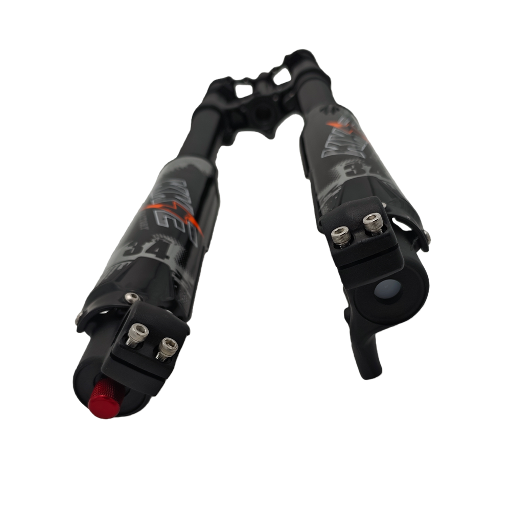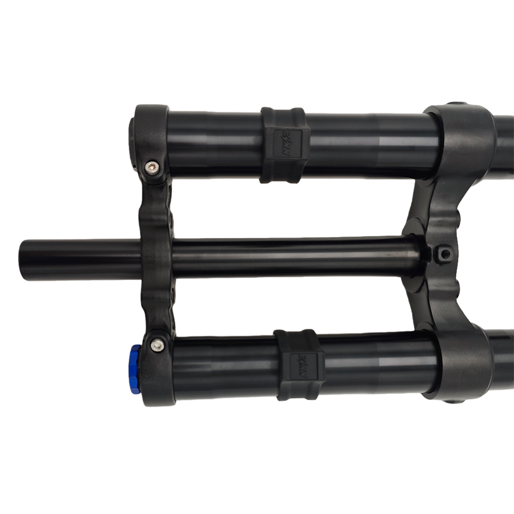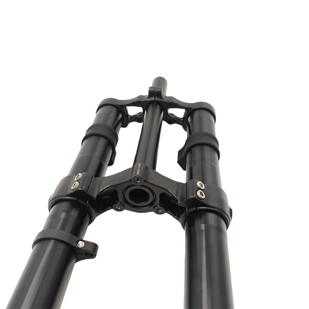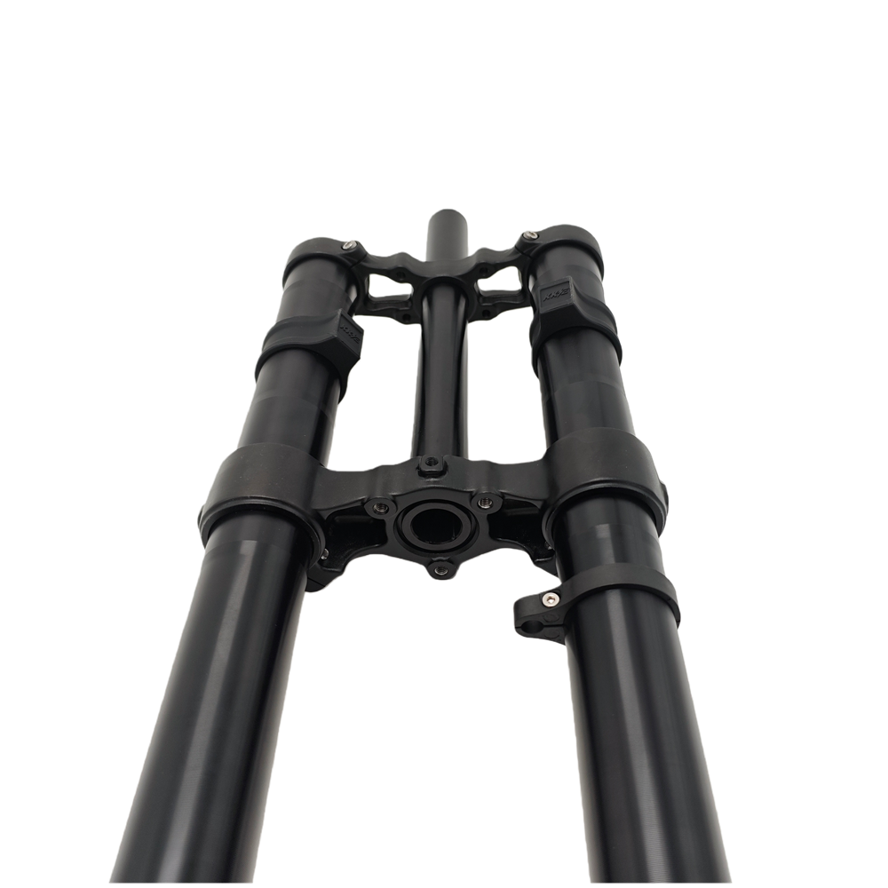 The KKE Fork is compatable with all Surron/Talaria/Stealth Bomber/Ebike/MTBs. This is a complete fork suspension system designed for Ebikes motorcycles and scooters. It includes all necessary components such as mounting hardware, fork yoke, axle, and neck bearing. Designed by KKE, this front suspension system provides a smooth and comfortable ride, enhancing the overall performance of the vehicle. Ideal for riders looking to upgrade their bike's suspension for improved handling and stability.