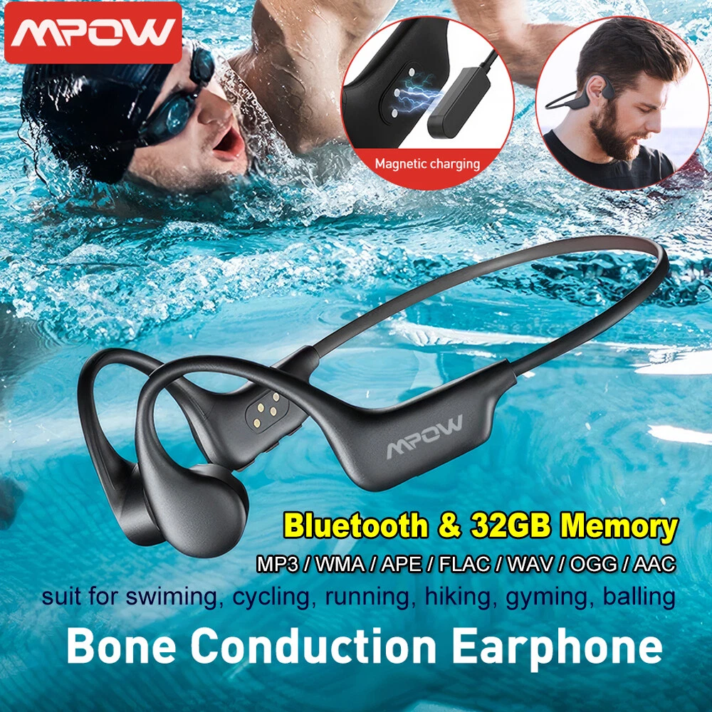 - Bluetooth + MP3 Modes: MPOW swimming headphones adopts the latest dual-core Bluetooth 5.4 chip for faster and more stable connection. It has a built-in 32G memory card that supports MP3 audio format and can store about 8000 songs. Bluetooth doesn't work underwater, so you can switch to MP3 mode while swimming so you can listen to all your favorite music and audiobooks underwater.