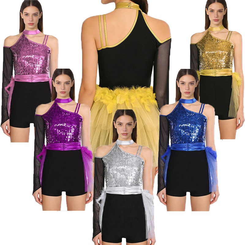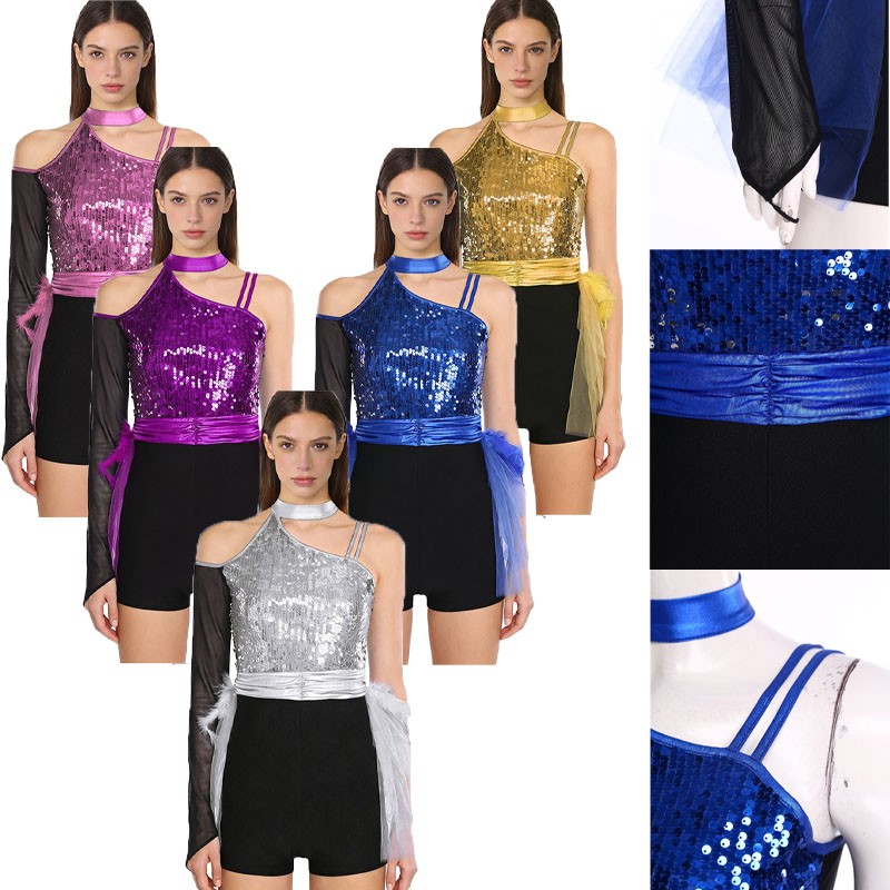 The shiny sequin and feather details bring a glamorous and eye-catching effect, making the wearer stand out on the dance floor.