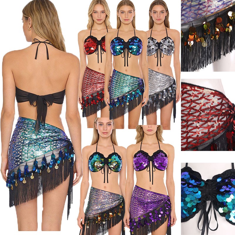 The sequin tassel triangle hip scarf, with its shiny sequins and dangling tassels, creates a dynamic and alluring effect as you move, making you the center of attention.