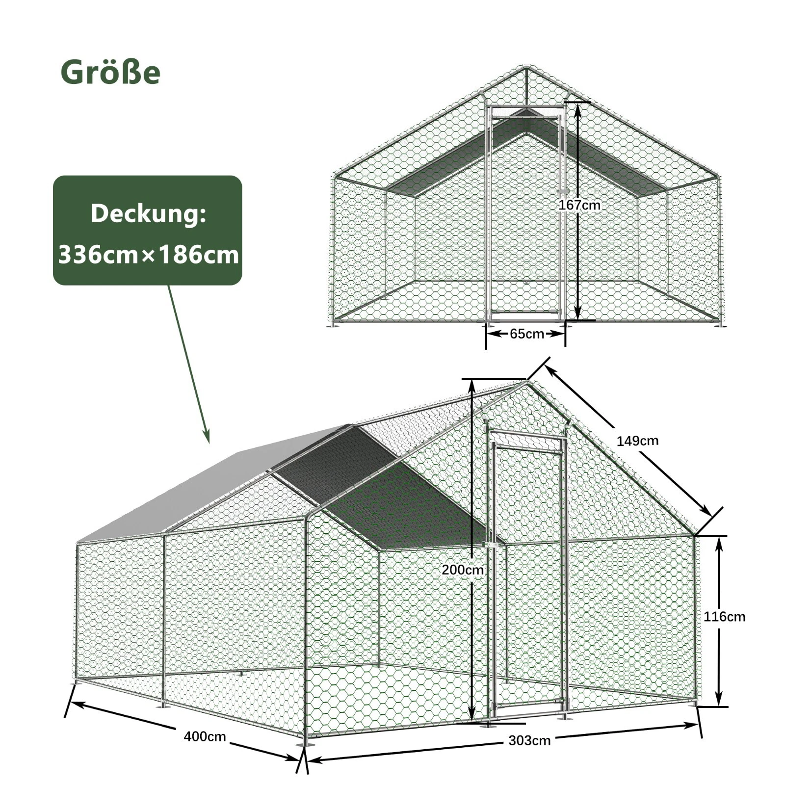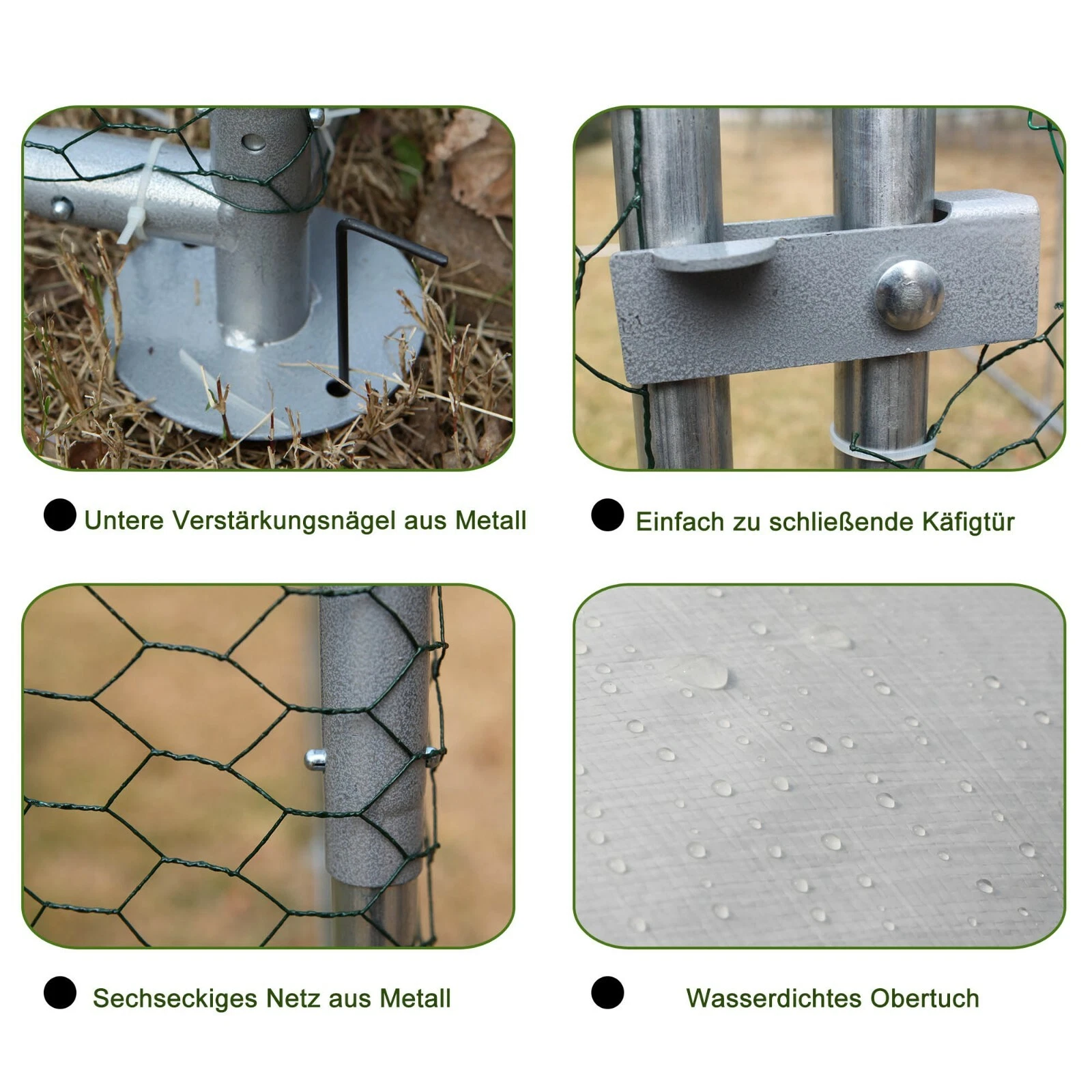 - Er hat ein Dach aus Polyethylen, das wasserfest ist. Der Hühnerauslauf bietet ausreichend Platz für Ihr Geflügel.