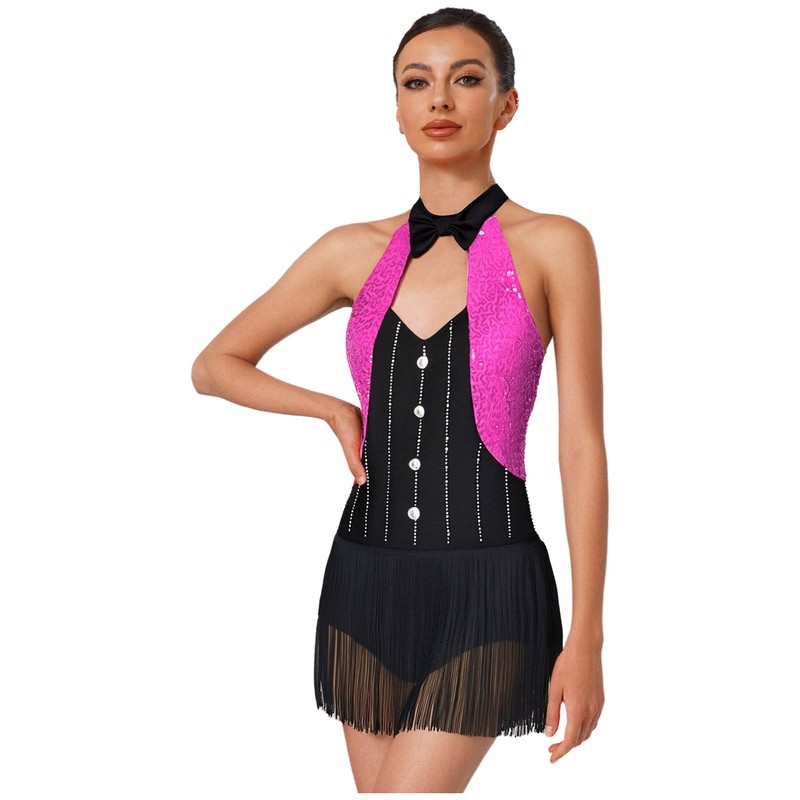 Girls Ballroom Samba Dancewear Leotard Skirt Party Dress With Tassel BacklessUSD 8.99
