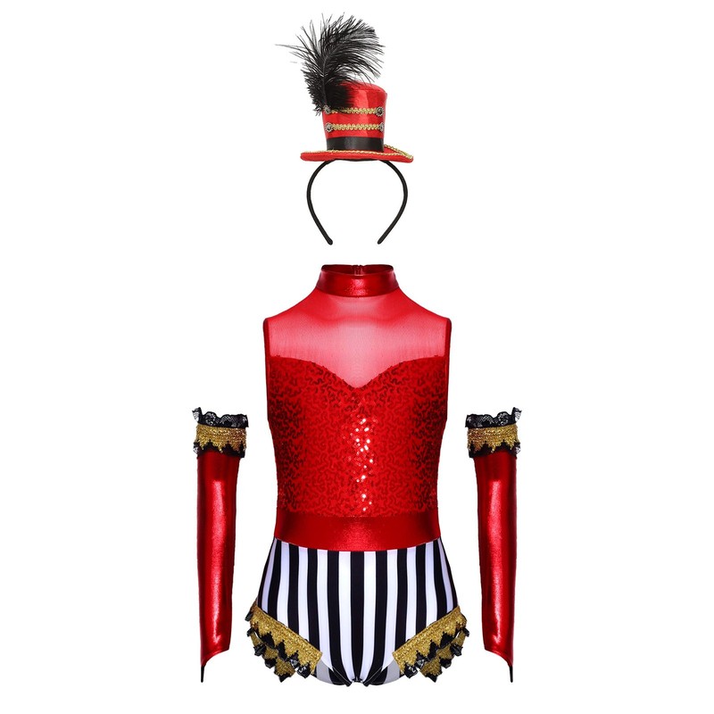Girls Circus Magician Set Mock Neck Ringmaster Roleplay Outfits Theme PartyUSD 9.99