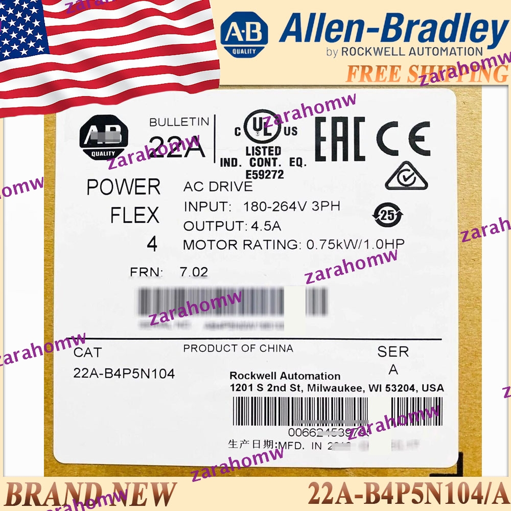 22A-B4P5N104/A Brand New AB PLC PowerFlex AC Drive 22A B4P5N104 serA Free Ship