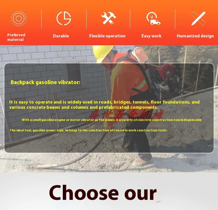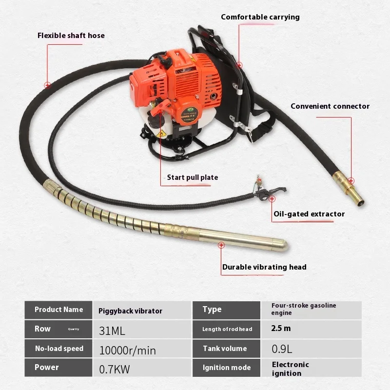 Two or four-stroke high-power insertable gasoline engine vibrator, concrete and cement vibrator, backpack vibrator rod