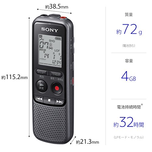 Maximum recording time with 4GB of built -in memory is about 1,043 hours * LP mode (MP3 monaural 8kbps) When recording ■ "Noise cut filter" that reduces noise ■ Naturally listening and late -hearing with "digital pitch control". It can be played at a pitch close to (0.5x speed-2x speed) ■ AA batteries x 2