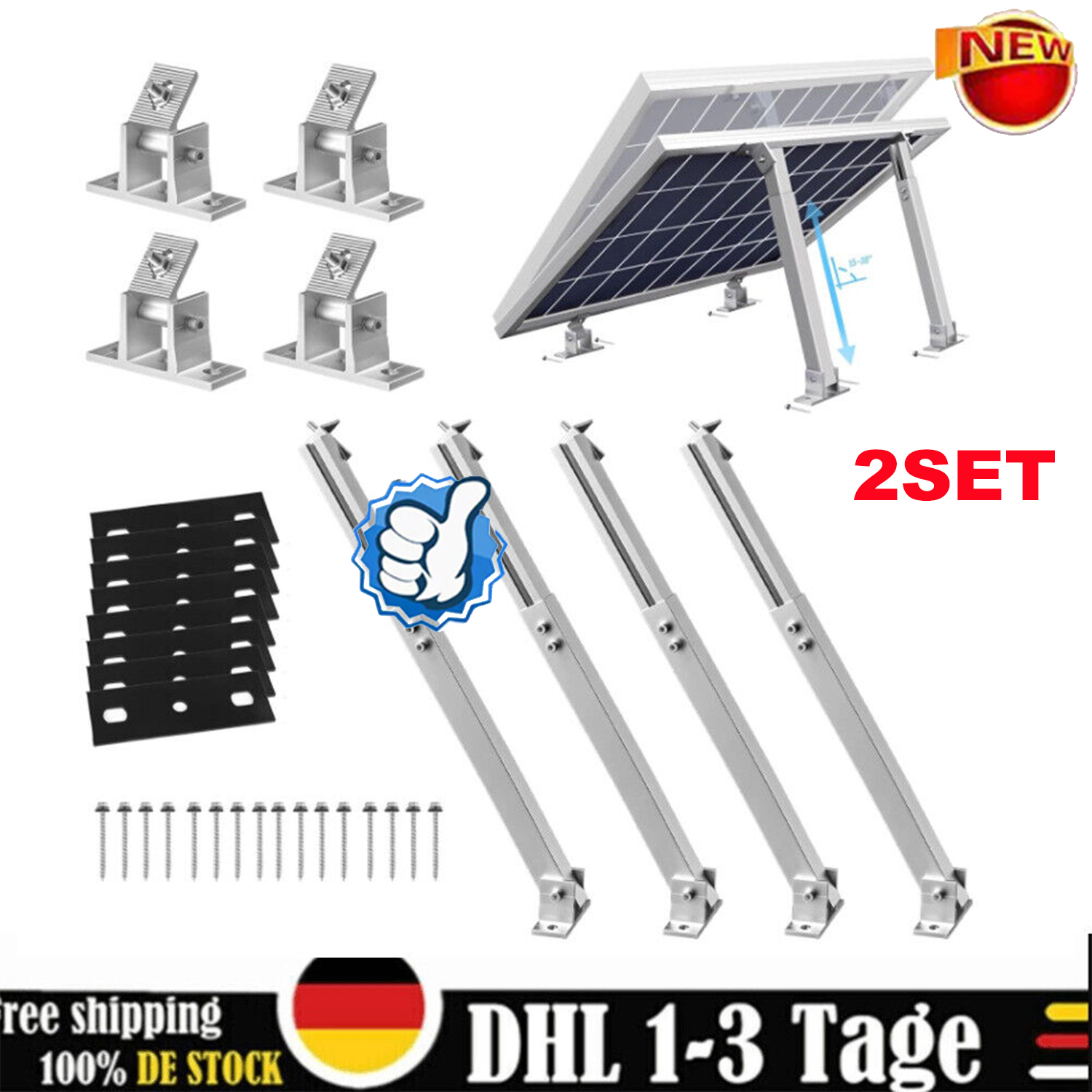 【HOHER WIRKUNGSGRAD】: Ideal für die Positionierung von Solarmodulen in einem Winkel auf einem Dach. Gewinnen Sie bis zu 25% mehr Wirkungsgrad, indem Sie Ihre Paneele in Richtung der Sonne neigen, anstatt sie flach zu legen.maximale Neigungswinkel hängen von der Größe der Solarmodule ab.