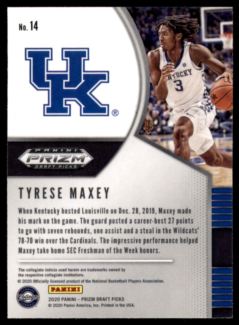 | 2020-21 Panini Prizm Draft Picks Collegiate Tyrese Maxey RC Kentucky Wildcats | ||||||||||||||||||