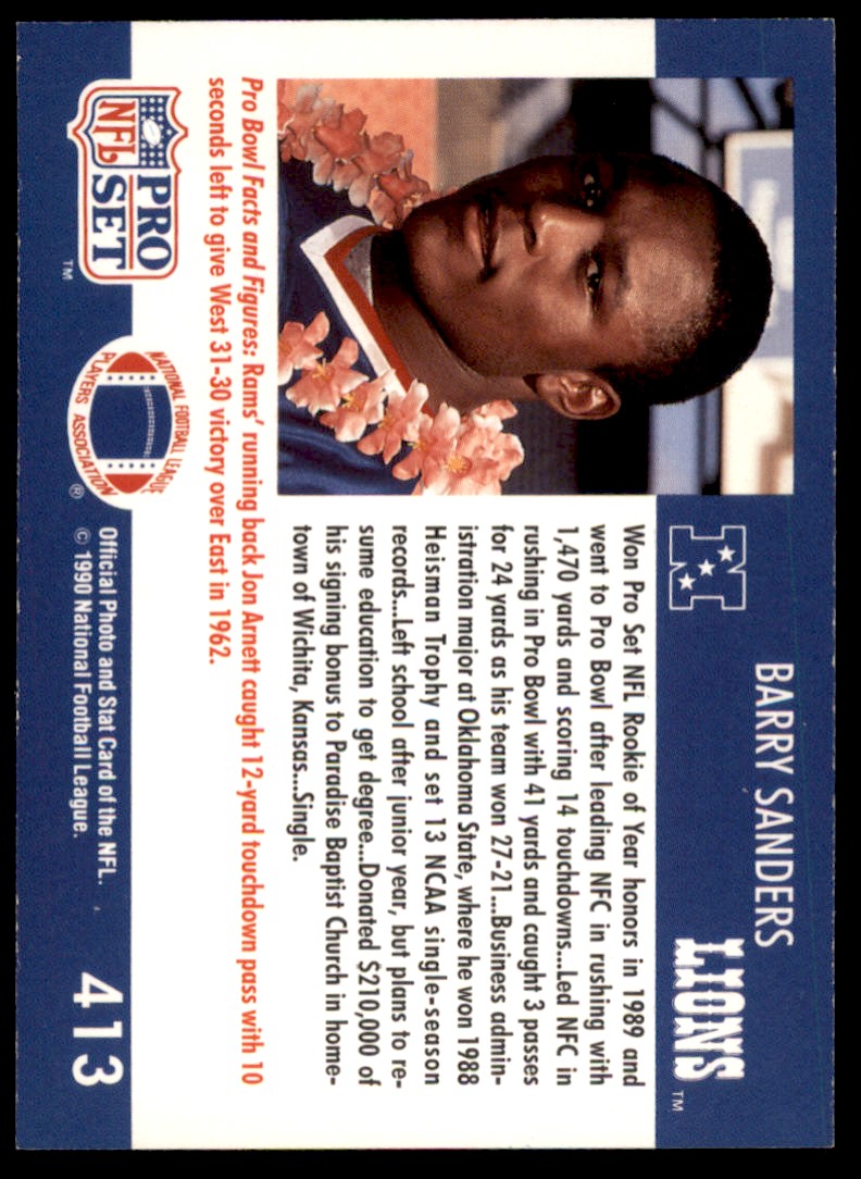| 1990 Pro Set Barry Sanders Detroit Lions #413 | ||||||||||||||||