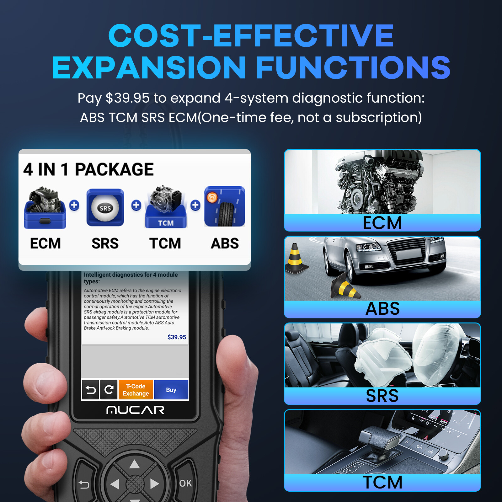 Professional System Diagnostics-Diagnose 4 Commonly Used ECUSystems (ABS/SRS/ECM/TCM)----Can be upgraded according to individual needs.