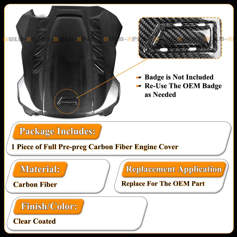 For 2020-2023 BMW S63 F95 X5M F96 X6M Full Carbon Fiber Engine Cover Replacement