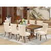 Dive into the captivating allure of Luxy, an opulent furniture collection carefully selected by East West Furniture. Explore its vast range and uncover standout pieces like the breathtaking 9-piece dining set, featuring a rectangular table with Removable leaf and 8 dining chairs. Each component is meticulously fashioned with precision and generous proportions, ideal for effortless entertaining and hosting. The sleek, modern design effortlessly elevates any kitchen or dining area, enhancing both everyday meals and special occasions. Radiating timeless sophistication, the dining set boasts an Antique Walnut tabletop paired elegantly with a robust solid wood pedestal base. The refined dining chairs perfectly complement the ensemble with their antique walnut legs and luxurious Light Beige Linen Fabric upholstery, adding a touch of class to any room. Constructed from durable Acacia Wood, this set seamlessly combines longevity with innate elegance, ensuring reliable performance for years to come. Acacia wood's renowned durability not only guarantees lasting quality but also enriches the atmosphere of any space. Our dining chairs seamlessly blend plush Linen Fabric with sturdy craftsmanship, making them ideal for active households. With an impeccable balance of style and comfort, they elevate the charm of your dining area to unprecedented heights.