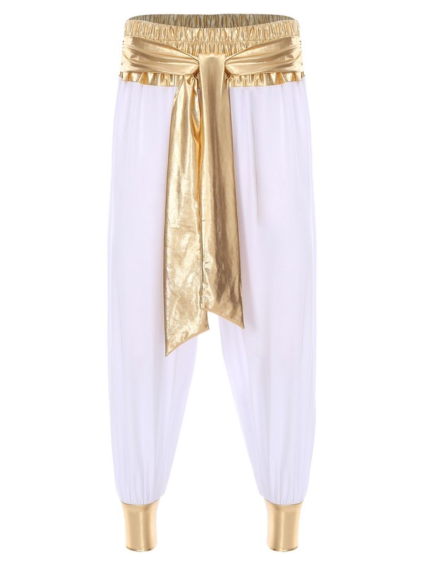 The long pants design with decorative sash enhance the overall aesthetic, adding a regal and exotic feel to the outfit.