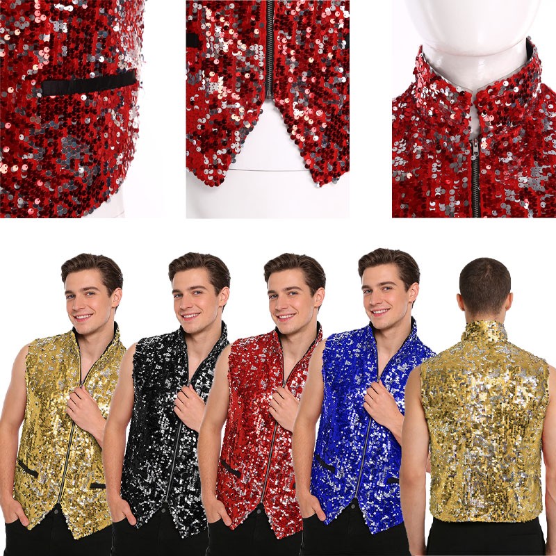 Designed with open front, sleeveless, stylish metallic shiny trim and loose fitting, contrast vest is a perfect costume for cospaly party.