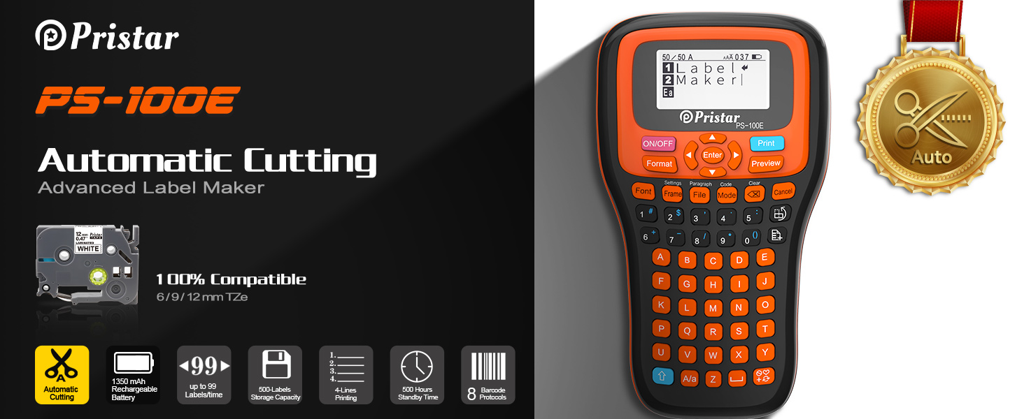 - Multi-labels Printing - Pristar handheld PS-100E label maker is compatible with Brother TZe 0.13"-0.47" label tapes in different materials and colors, used for standard laminated tape, fabric tape, heat shrink tubes industrial tapes, flexible ID tapes, satin ribbon tapes, etc.