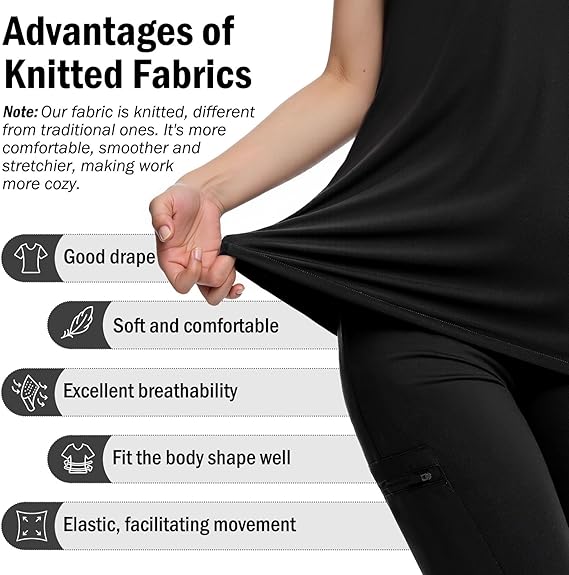 【Milk Silk Material】 95% Polyester, 5% Spandex. Milk silk textured fabric is fade resistant and super stretchy making it truly feel like you're wearing feather. The 4-Way Stretch insures that you will stay cool while your day gets hectic.