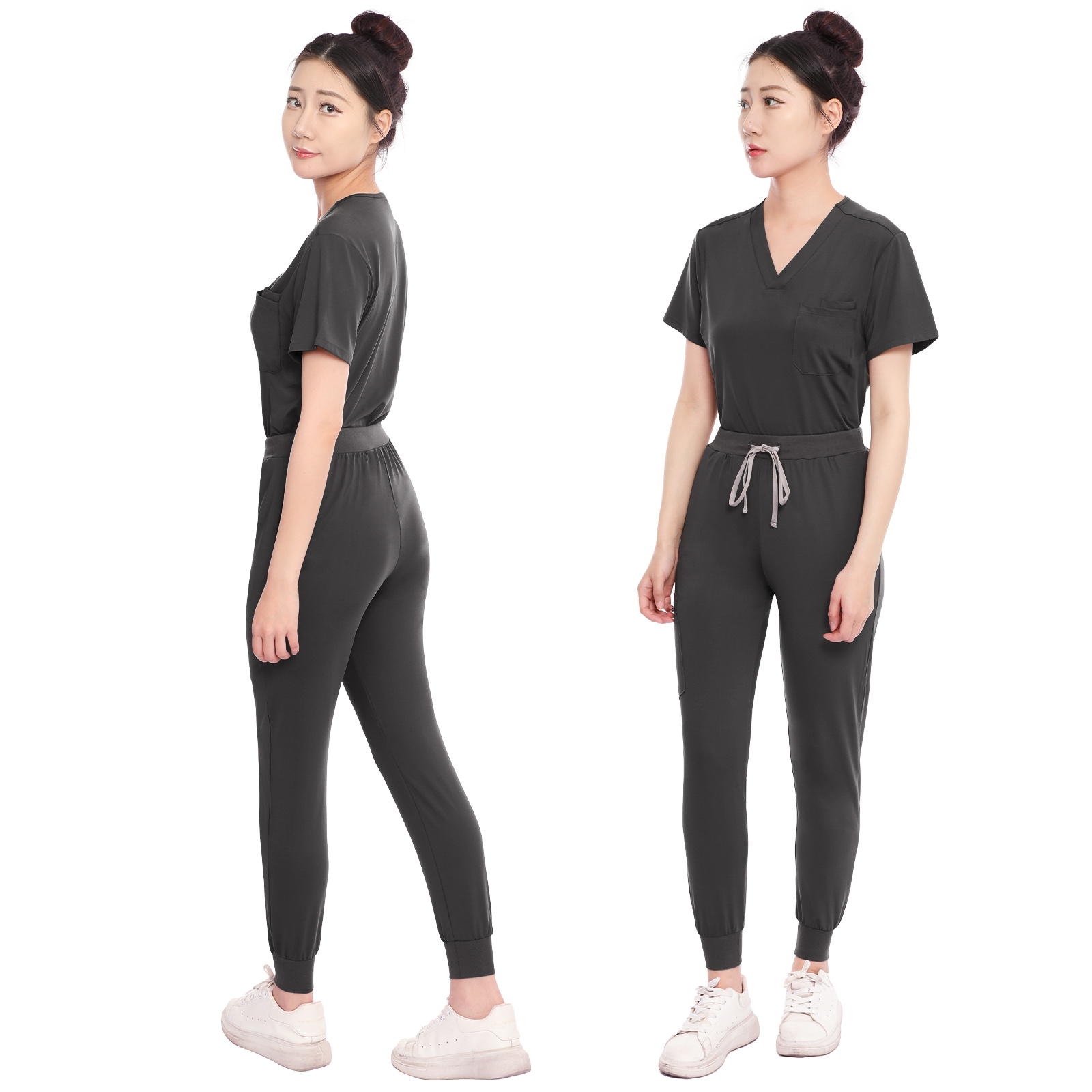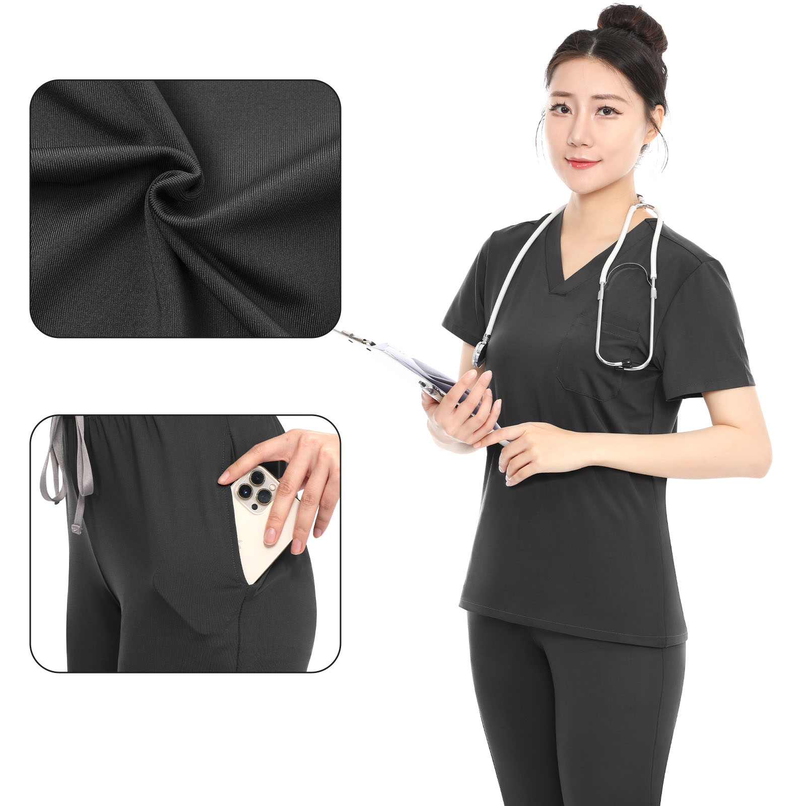 V-Neck Women Nurse Uniform Suit Women Medical Scrubs Top and Pants Black
