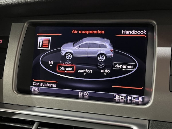 .12V Power Socket - Centre Console, 12V Power Socket - Luggage Compartment, 20GB Jukebox for Storing and Managing Music Files - WMA and MP3 Format, 21in Alloy Wheels - 5-Arm Rotor Design Matt Titanium Finish, 3D and Topographical Mapping, 7-Digit Postcode Recognition, ABS - Anti-Lock Braking System, AMI - Audi Music Interface, Acoustically and Visually Indicating Distances to Obstacles with Guiding Lines, Adaptive Air Suspension, Air Vent Sleeves - Aluminium Look, Airbags - Driver, Airbags - Front Passenger, Airbags - Front Side System, Airbags - Sideguard Curtain, Airbags - Sideguard Curtain Rear, Alarm - Thatcham Category 1, Aluminium Roof Rails, Ambient Lighting - Centre Console, Anti Theft Locking Wheel Bolts, Audi Connect, Audi Parking System Advanced with Reversing Camera, Audi Parking System Rear with Acoustic Indicators, Auto-Dimming Rear-View Mirror, Automatic Wipers with Rain Sensor, Body Coloured Bumpers, Cables x2 - MP3 Connection Including iPod, Car Jack, Charging Function for Various Mobile Devices, Cloth Headlining in Black, Collapsible Spare Wheel, Colour Drivers Information System - DIS, Comfort Front Centre Armrest, Cruise Control, Cup Holders - Centre Console, Cup Holders in Rear Armrest x2, Cupholders, Cupholders in Front Centre Armrest, Cupholders x2 in Third Row, DAB Digital Radio, DSP Sound System, Display Screen Colour - 7in TFT High Resolution and Split Screen Mode for Route Information, Door Handles - Chrome Inserts, Door Mirrors - Heated-Electrically Adjustable-Folding, Door Panel - Alcantara, Door Sill Trims - S Line, Door Trim Strips in Body Colour, Double Glazing, Double Load Floor, Dual-Zone Electronic Climate Control, Dynamic Route Guidance - TMC, EBD - Electronic Brakeforce Distribution, EDL - Electronic Differential Lock, ESP - Electronic Stability Programme, Efficiency Program in the Drivers Information System - DIS, Electric Windows - Front and Rear, Electrically Adjustable 4-Way Lumbar Support, European Navigation Data, Exhaust Tailpipe - Reshaped, FM-AM Radio, First Aid Kit, Front Bumper Protection Strips, Front Fog Lights, Front Passenger Airbag Deactivation Switch, Front and Rear Floor Mats, Front and Rear Footwell Lighting, Front and Rear Lower Bumper Spoilers with Stainless Steel Under-Body Protection, Hard Drive - 40GB, Headlights - Automatic Adjustment, Headlights - Bi-Xenon Plus, Headlights - Light Sensor, Headlights Washers, Heated Front Seats, ISOFIX Child Seat Mounting for Front Passenger, ISOFIX Child Seat Mo