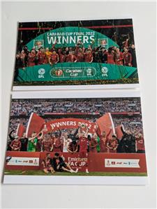 Two 7 x 5 inch approx. modern gloss photos of the Liverpool FC squad celebrating winning the FA Cup Final at Wembley stadium on the 14th May 2022 (the bottom photo).
