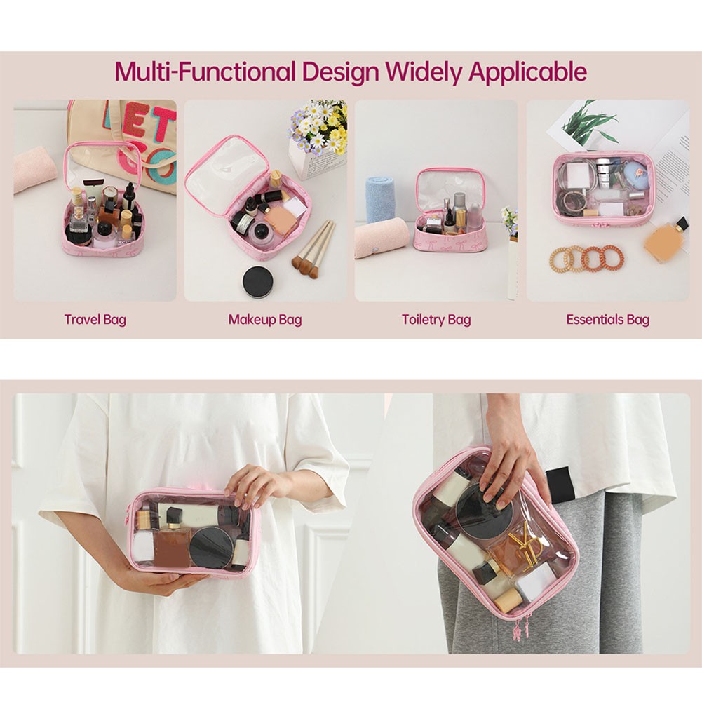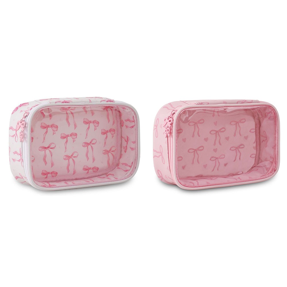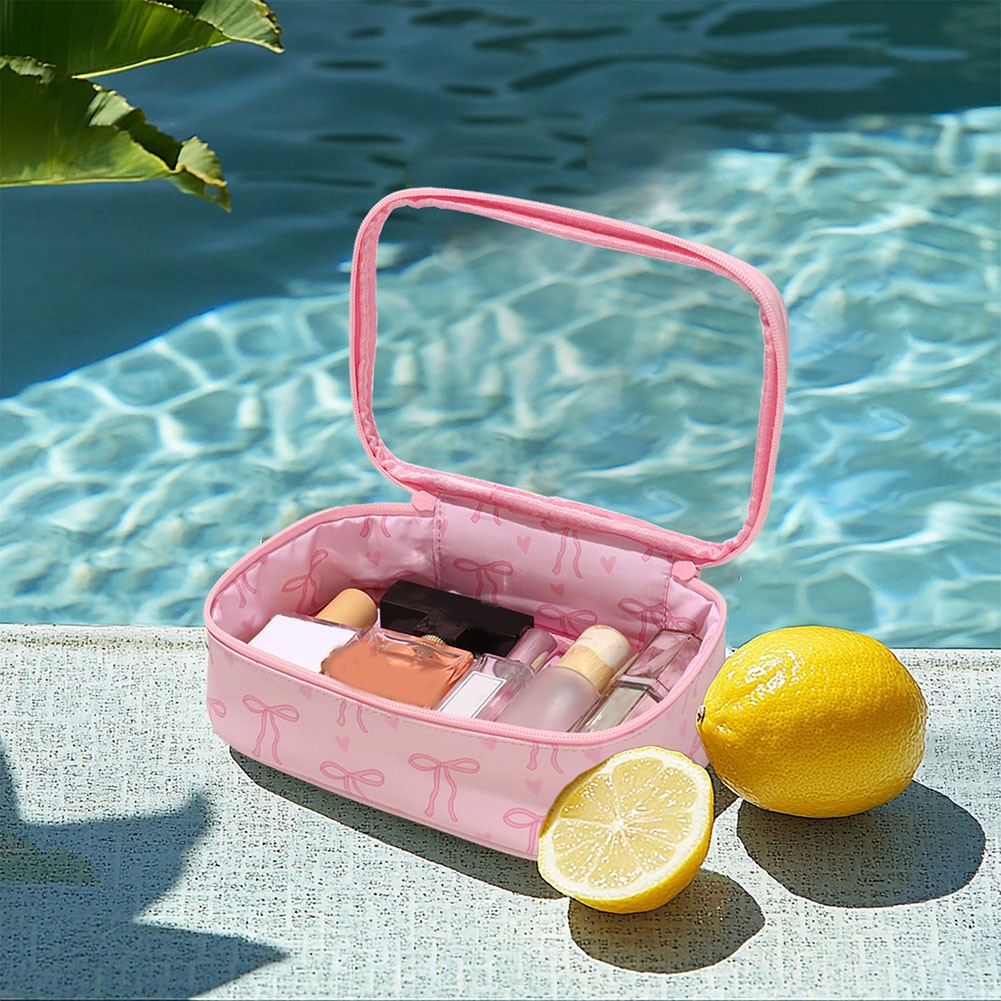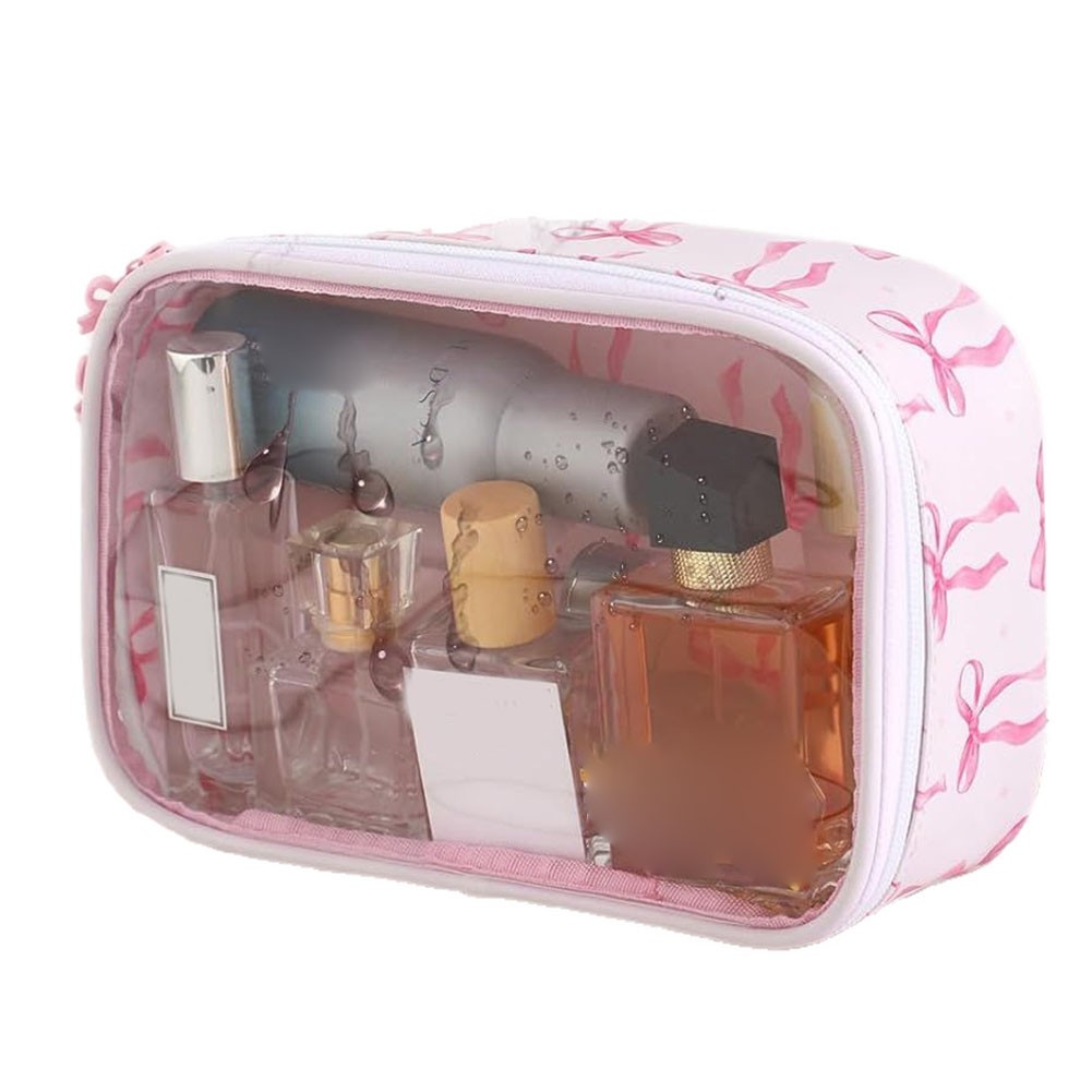Trousse de Maquillage Portable Transparente PU avec Noeud pour Cosm??tiques et A