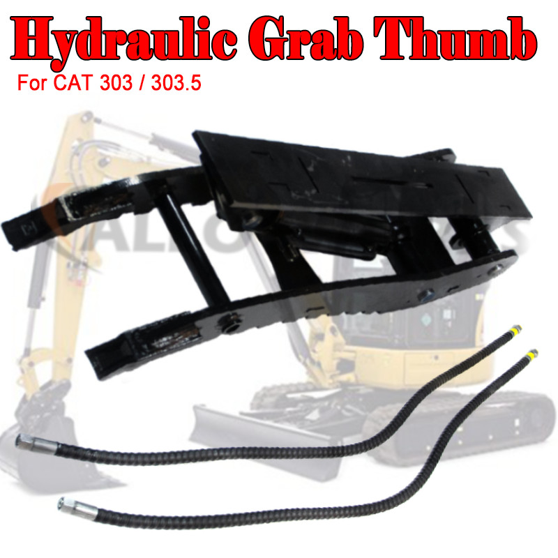 Product Description : 1.Thumb Wide:13" 2.Cat 303 303.5 Hydraulic Thumb Kit 3. This kit comes with everything needed to install on your machine, including thumb, hoses, fittings, cylinder, longer main pin and the two cylinder pins. this kit is for excavators that already have the cylinder mount on boom. 4. Equipping excavators with hydraulic thumb attachments can bring triple benefits: hydraulic pressure for precise gripping, moving and placing of objects, and hydraulic control of the angle, thus improving operational flexibility. 5. It expands the working range of the machine with a large tensioning angle, enabling it to effectively handle objects of various shapes and sizes, thus accomplishing a variety of engineering tasks. 6. The hydraulic thumb provides a firm grip on objects, minimizing the risk of falling and slipping, thereby increasing operational safety.