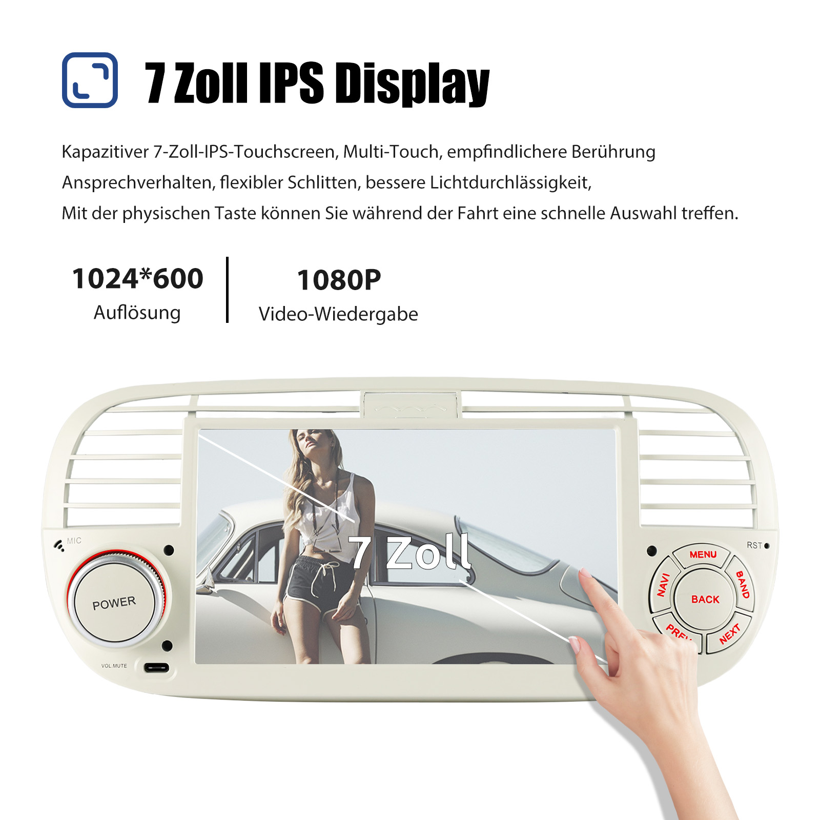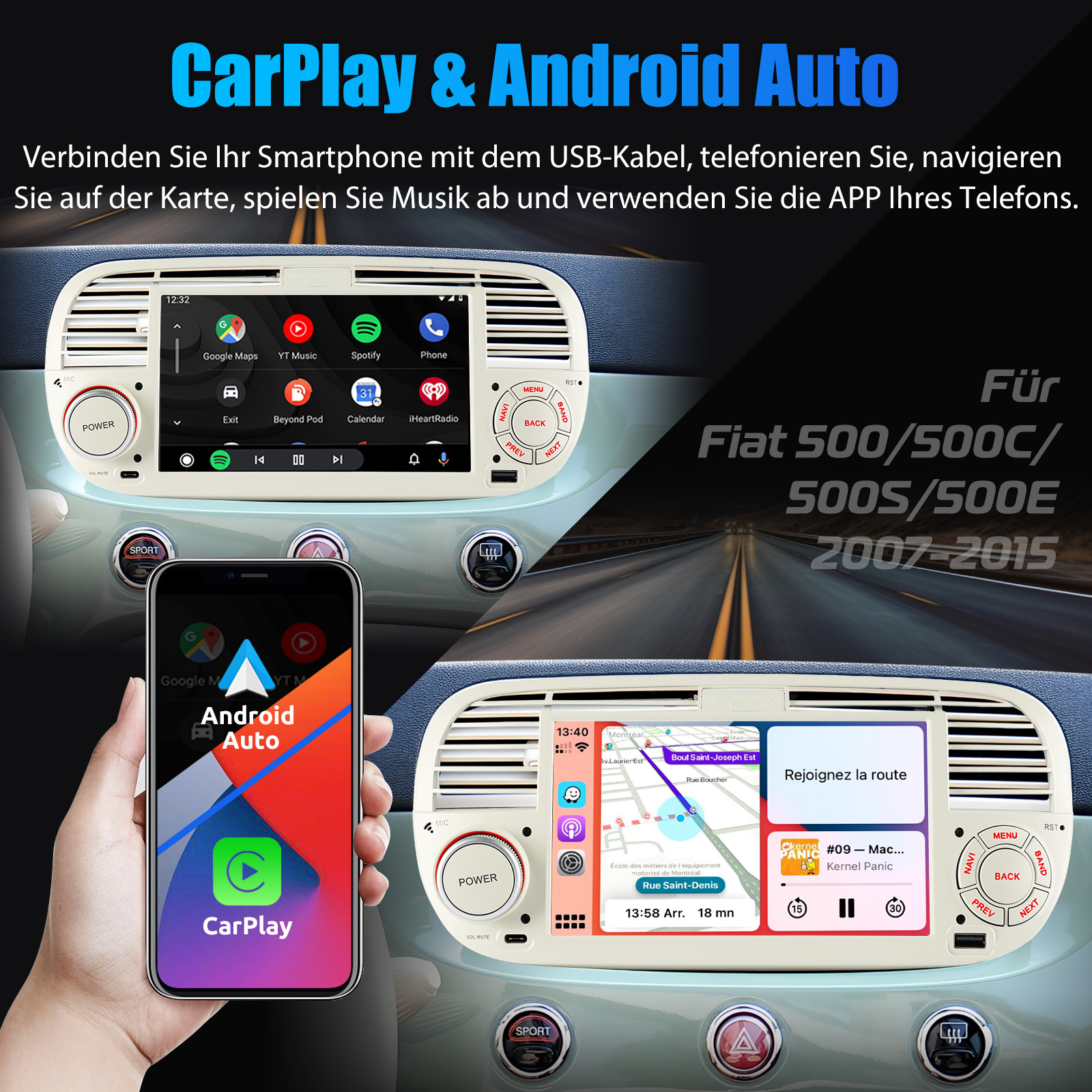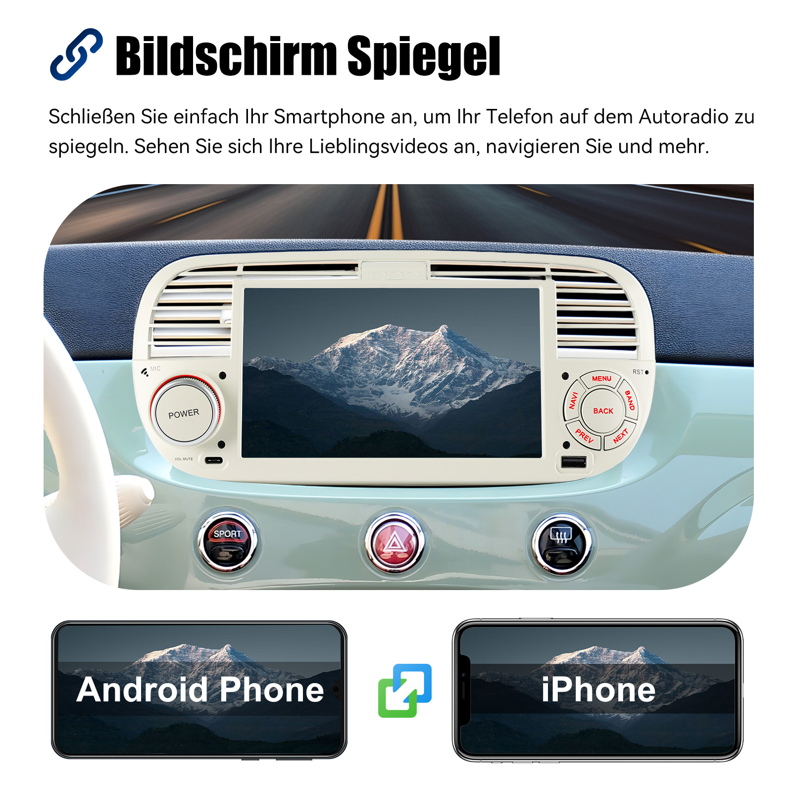 7 Zoll Android 15 Autoradio für FIAT 500: Dieses Radio ist geeignet für FIAT 500 2007-2015. Das Android Autoradio mit 7" 1024* 600 HD kapazitivem Touchscreen, 2GB RAM und 64GB ROM ermöglicht das Herunterladen Ihrer Lieblings-Apps und -Videos, damit das Autofahren nicht mehr langweilig wird. Kein zusätzlicher Rahmen, kein Kabelwechsel, Plug and Play. Es wird mit Canbus geliefert und unterstützt die meisten Originalfunktionen: Lenkradsteuerung, Rückwärtssignale und Lesen von Original-Computerdaten usw.