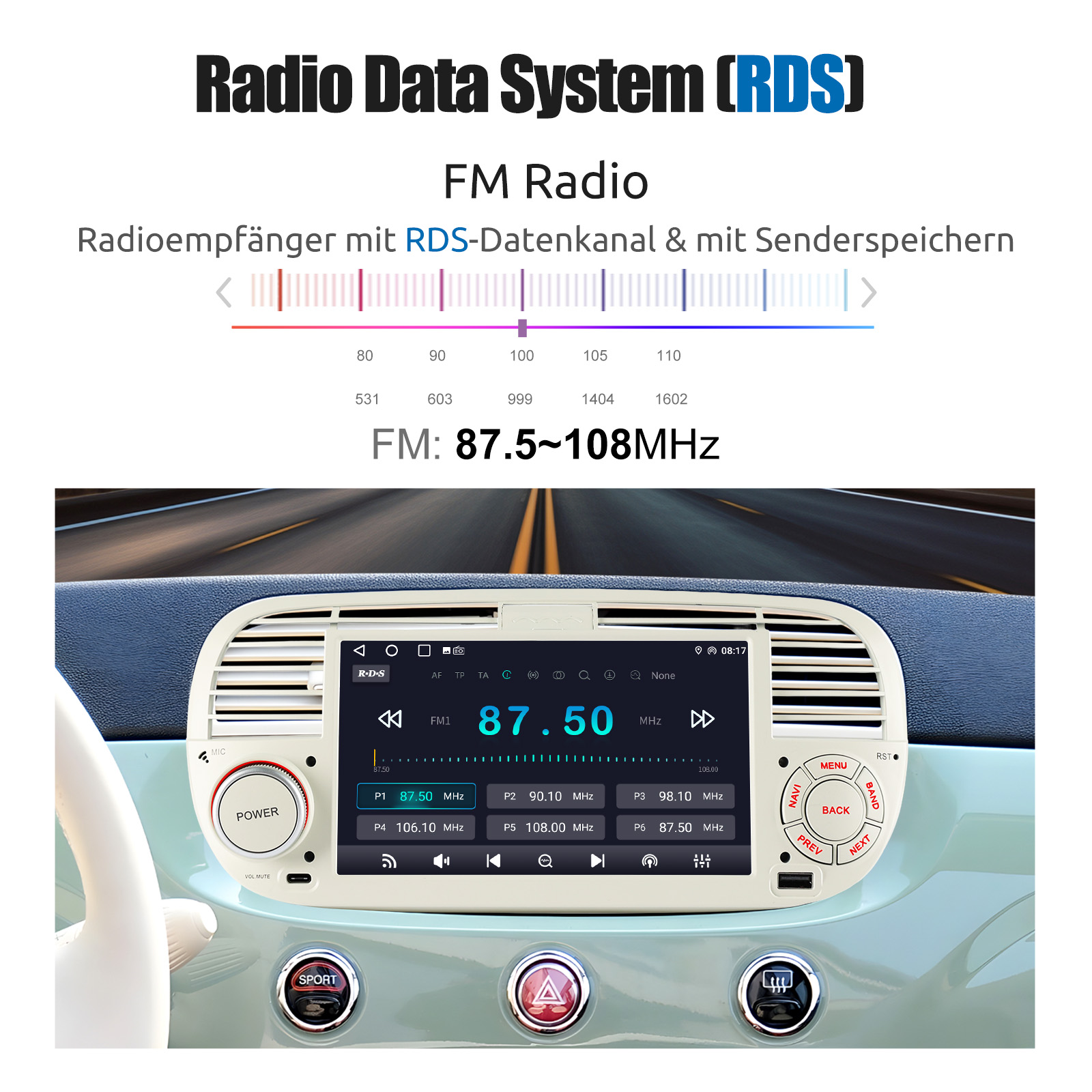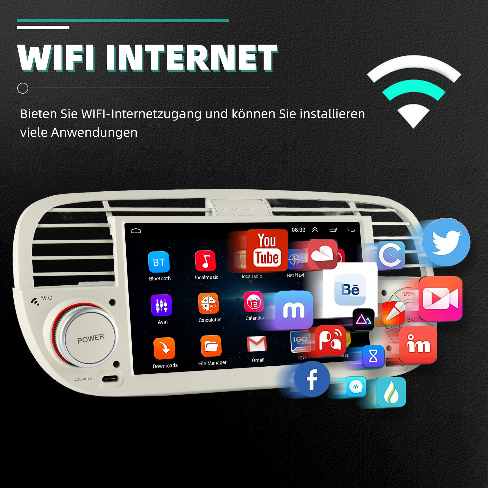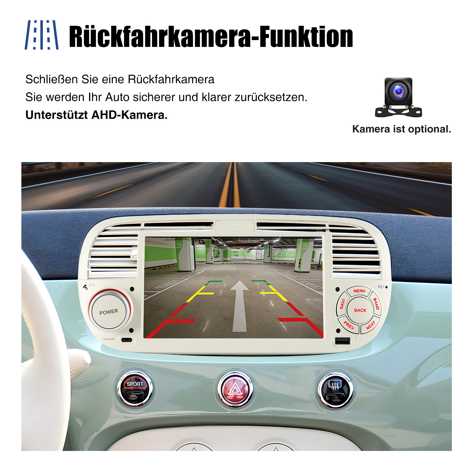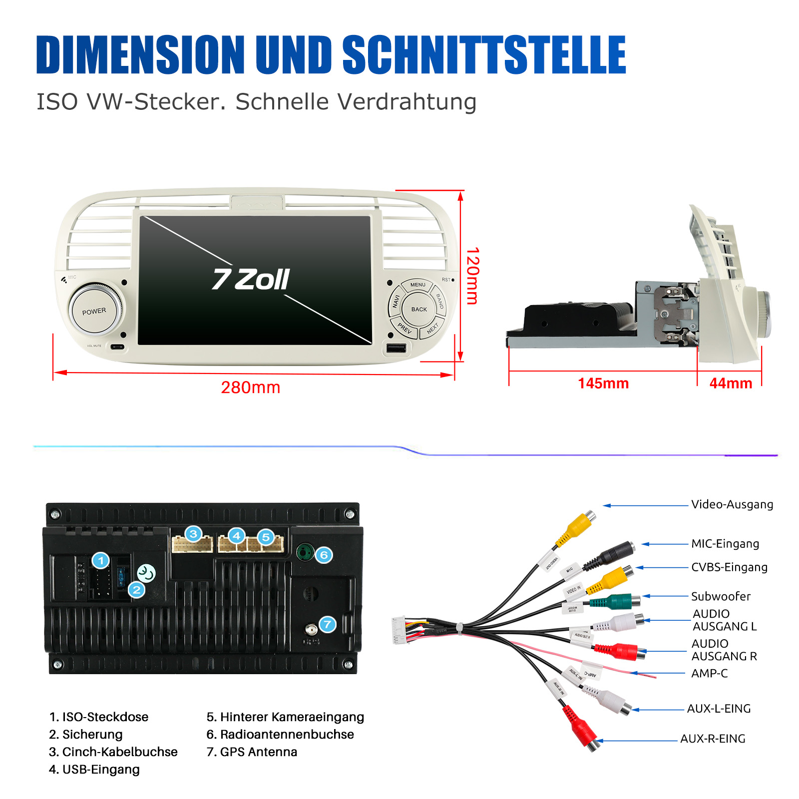7 Zoll Android 15 Autoradio für FIAT 500: Dieses Radio ist geeignet für FIAT 500 2007-2015. Das Android Autoradio mit 7" 1024* 600 HD kapazitivem Touchscreen, 2GB RAM und 64GB ROM ermöglicht das Herunterladen Ihrer Lieblings-Apps und -Videos, damit das Autofahren nicht mehr langweilig wird. Kein zusätzlicher Rahmen, kein Kabelwechsel, Plug and Play. Es wird mit Canbus geliefert und unterstützt die meisten Originalfunktionen: Lenkradsteuerung, Rückwärtssignale und Lesen von Original-Computerdaten usw.