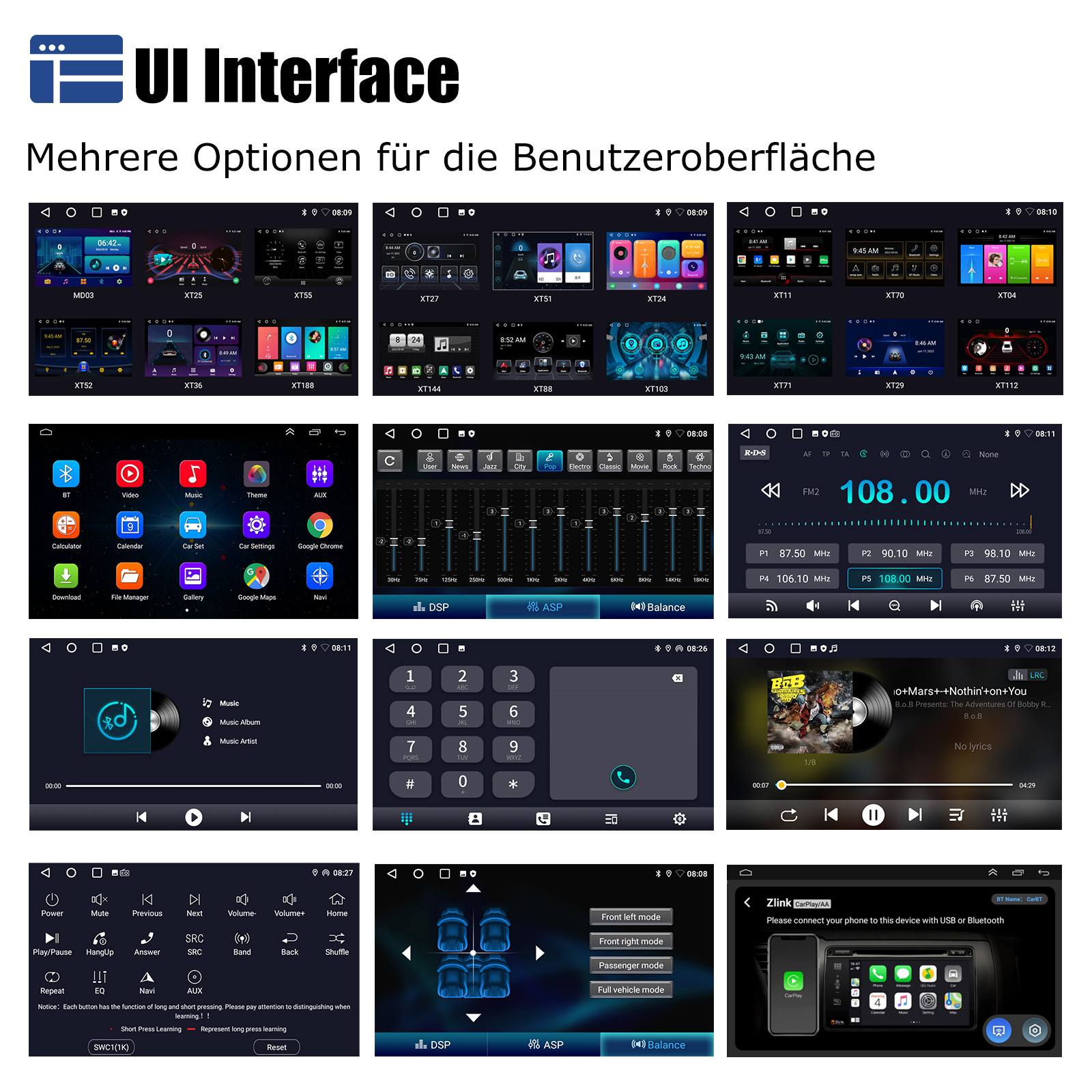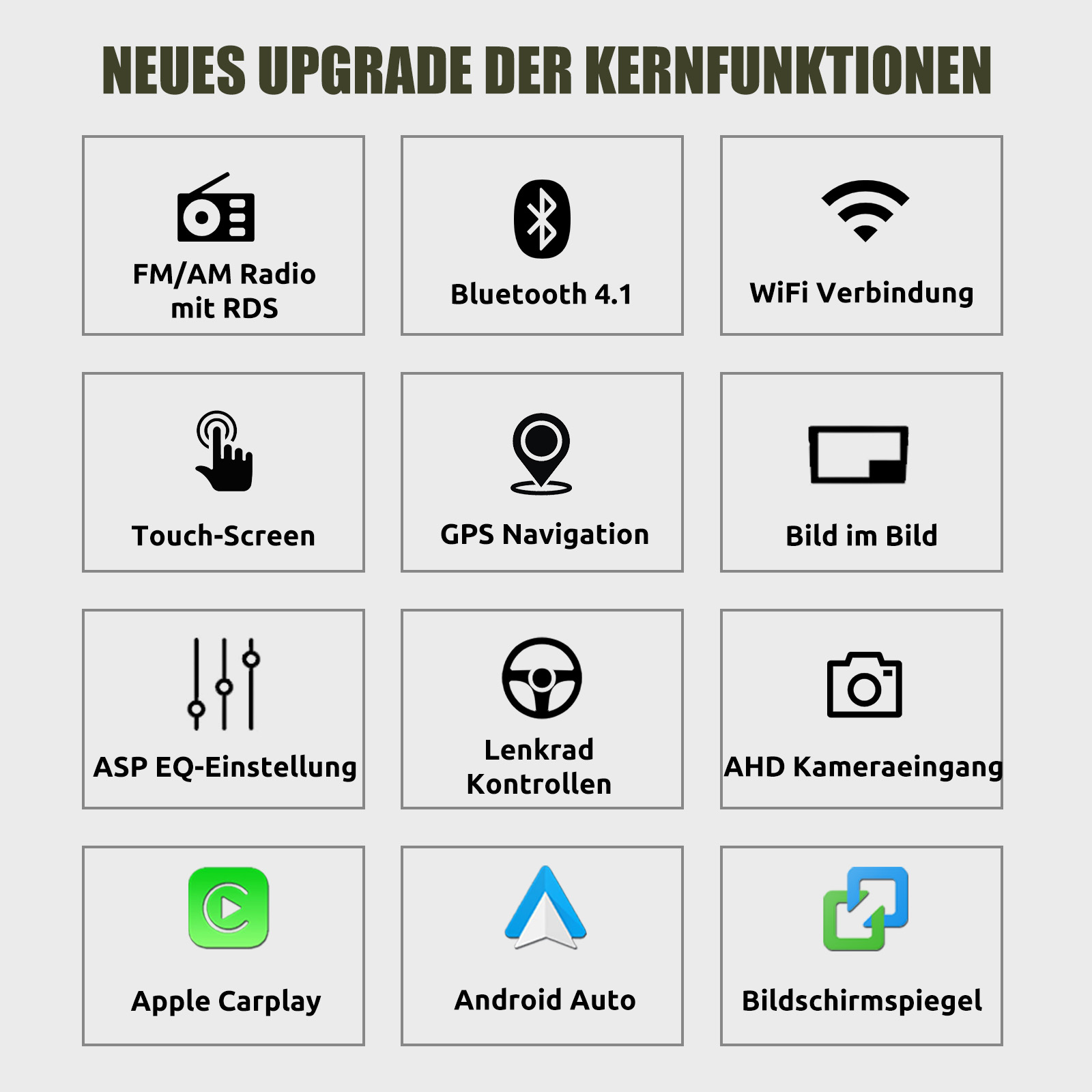RDS/FM-Radio und Bluetooth und ASP Sound: Unterstützt Bluetooth 4,1, mit integriertem Mikrofon, damit Sie während der Fahrt freihändig telefonieren können. Unterstützt den Zugriff auf das Telefonbuch, die Musikwiedergabeschnittstelle usw. RDS unterstützt. Sie können 18 FM Radiosender speichern. Eingebauter ASP-Chip. Unterstützt 32-Band-EQ-Einstellung, die nach Ihren persönlichen Vorlieben eingestellt werden kann.Der Ihrem Originalsound sehr ähnlich ist.4 x 45W Verstärker, Surround-Sound und Subwoofer-Ausgang.
