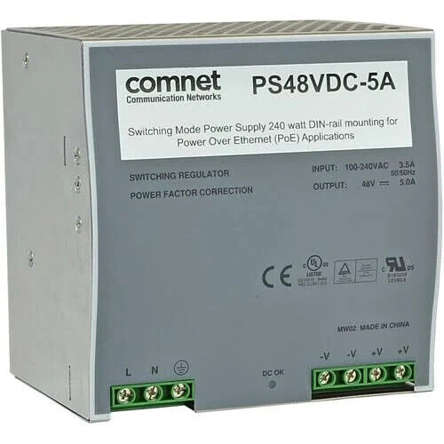 ComNet PS48VDC-5A 240W 48VDC DIN-Rail Power Supply - Ideal for PoE Systems