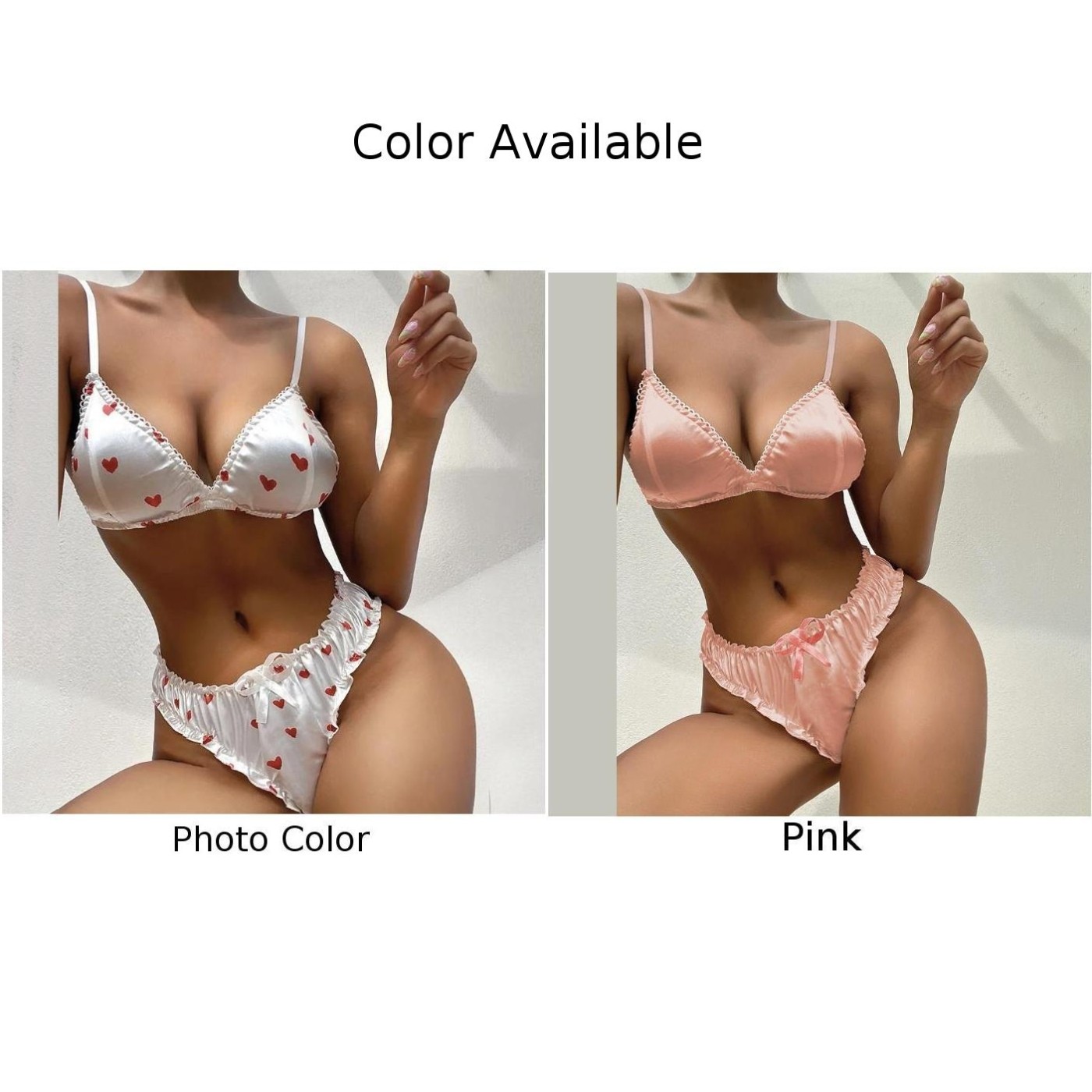 Détails : * Taille de l'étiquette : M-2XL, veuillez vous pour assurer ces mesures réelles vous conviendront. Tableau des tailles (1 pouces=2,54 cm) | Tag Size | M | L | XL | 2XL | Buste (cm) | 82 | 84 | 86 | 88 | Buste (inch) | 32.3 | 33.1 | 33.9 | 34.6 | Taille (cm) | 68 | 70 | 72 | 74 | Taille (inch) | 26.8 | 27.6 | 28.3 | 29.1 | Hips (cm) | 92.0 | 96.0 | 100.0 | 104.0 | Hips (inch) | 36.2 | 37.8 | 39.4 | 40.9 | Mesuré pour avant d'être étiré, connu sous le nom de données plates posées, veuillez permettre un écart de 1 ~ 2 cm | * Tissu de l'article : polyester (satin) * Couleur de l'article : comme le montrent les photos * État de l'article : Neuf * Description de l'article : ensemble culotte de soutien-gorge en satin soyeux doux, culotte haut pour lingerie Love Underwear 2 pièces, ensemble pyjama * Contenu de l'emballage : 1 * soutien-gorge + 1 * tongs (aucun accessoire inclus)
