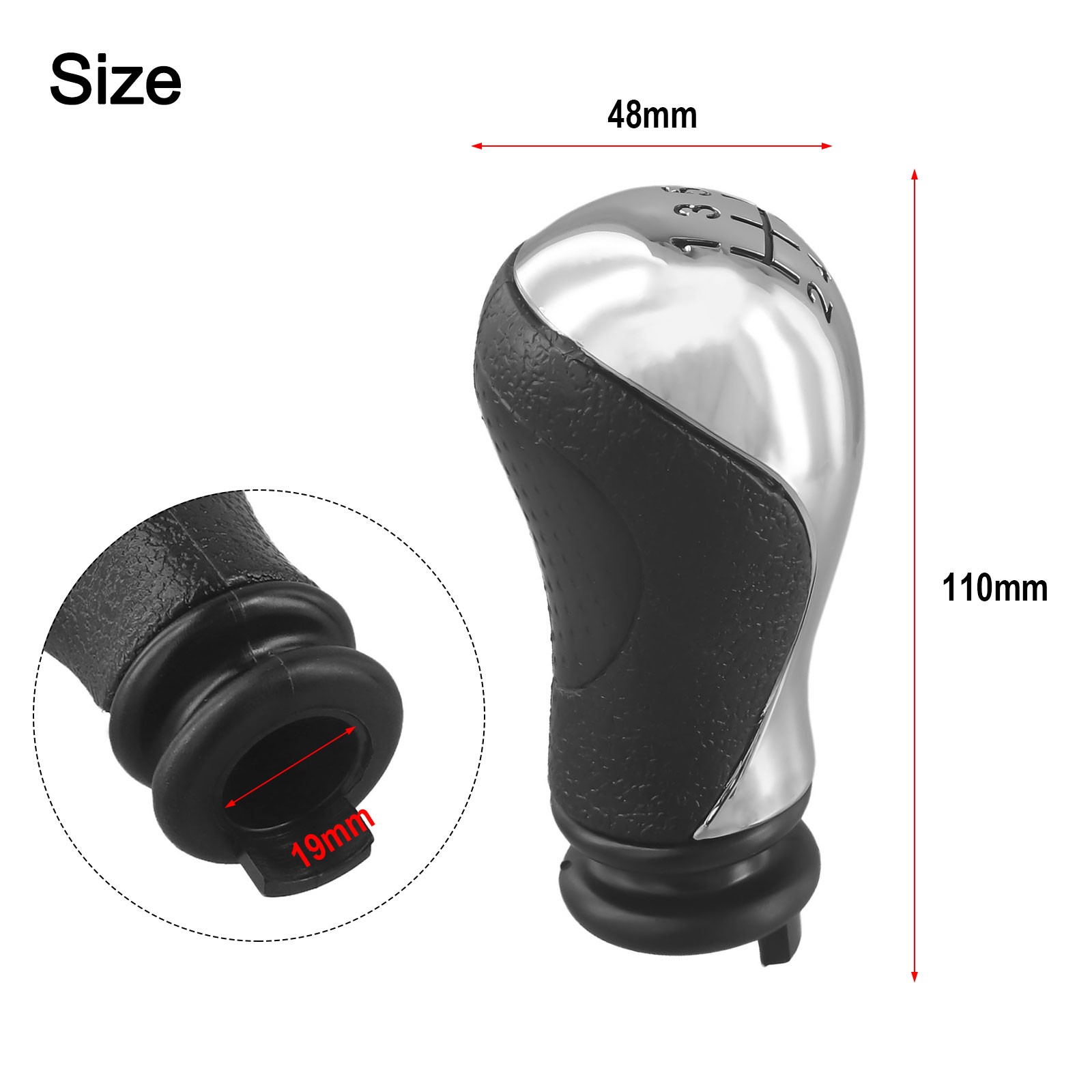 Spécifications : * Nom de la pièce : tête de bouton de changement de vitesse *Matériel:Matte Silver * Taille : diamètre du trou de montage : 19 mm *Color:Matte Silver * Montage haute universalité : NON * Numéro OEM : NO *Fitment: pour C5 2001-2008 pour XSARA 1999-2008 pour XSARA 1999-2010 pour C5 2001-2008