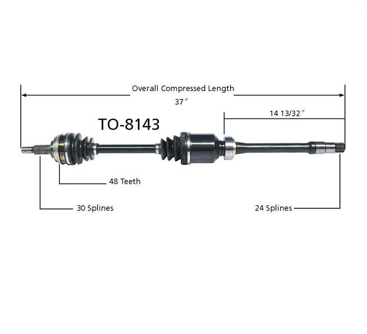 - 1x Part# TO-8143 100% All New Torque Tested Front Passengers Side CV Axle Complete