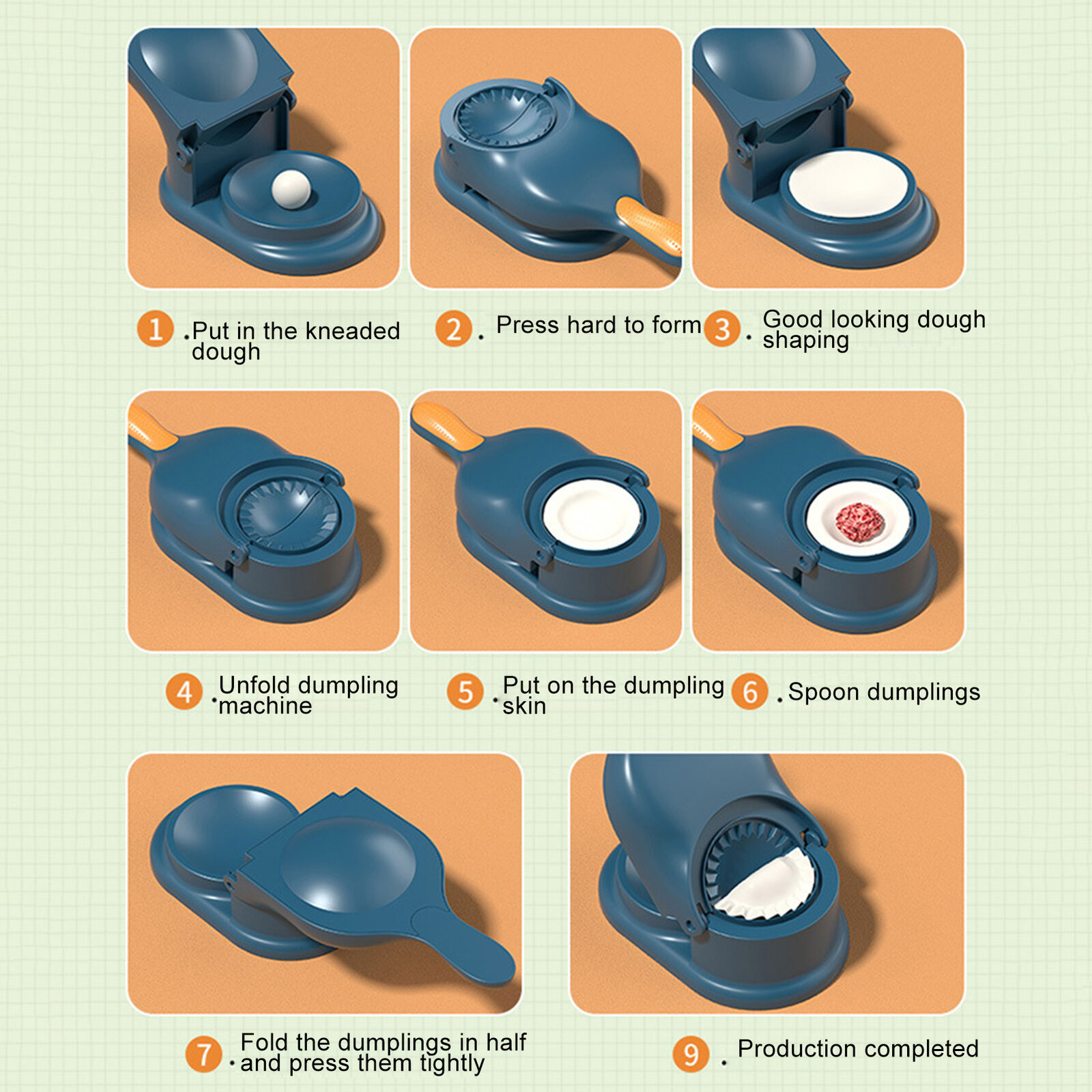 2.Multifunctional: 2-in-1 design in one, dough press and dumpling mould in one. The dough press is designed with a rounded recess to prevent splattering of flour. Ergonomic handle for effortless pressing.