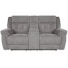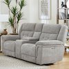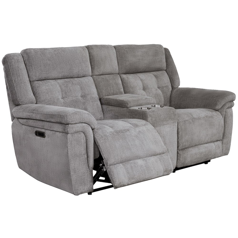 With its clean lines and transitional styling, the Richland Power Console Loveseat delivers a chic look and unbeatable functionality. The Richland Loveseat features a roomy storage console, two silver cup holders, USB/USB-C power outlets for easy charging, and beautiful quilted tufting across the body of the seat.