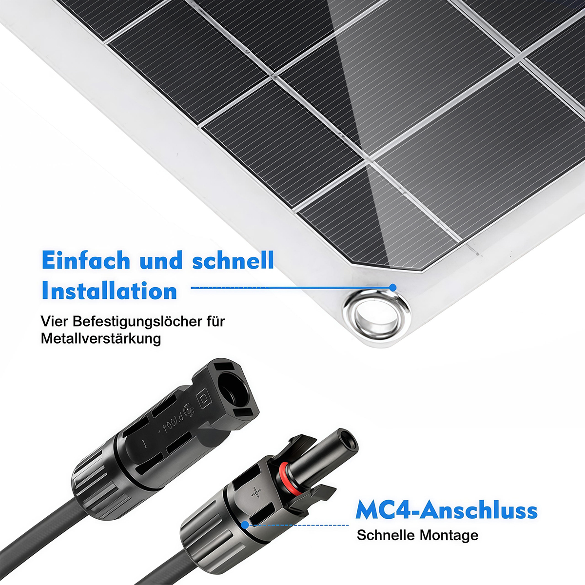 [Leicht und einfach zu installieren] Das Solarpanel ist einfach zu transportieren, zu installieren, zu hängen und zu entfernen. Dank fortschrittlicher Polymermaterialien wiegen diese flexiblen Solarpaneele 70% weniger als herkömmliche
