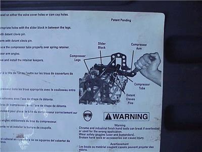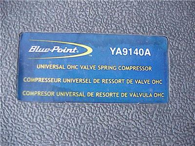 Original overhard cam valve spring compressor tool set in case. In excellent condition and complete made by Blue Point part number YA9140A. A must have for specialty work. There are other additional fasteners included inside set.
