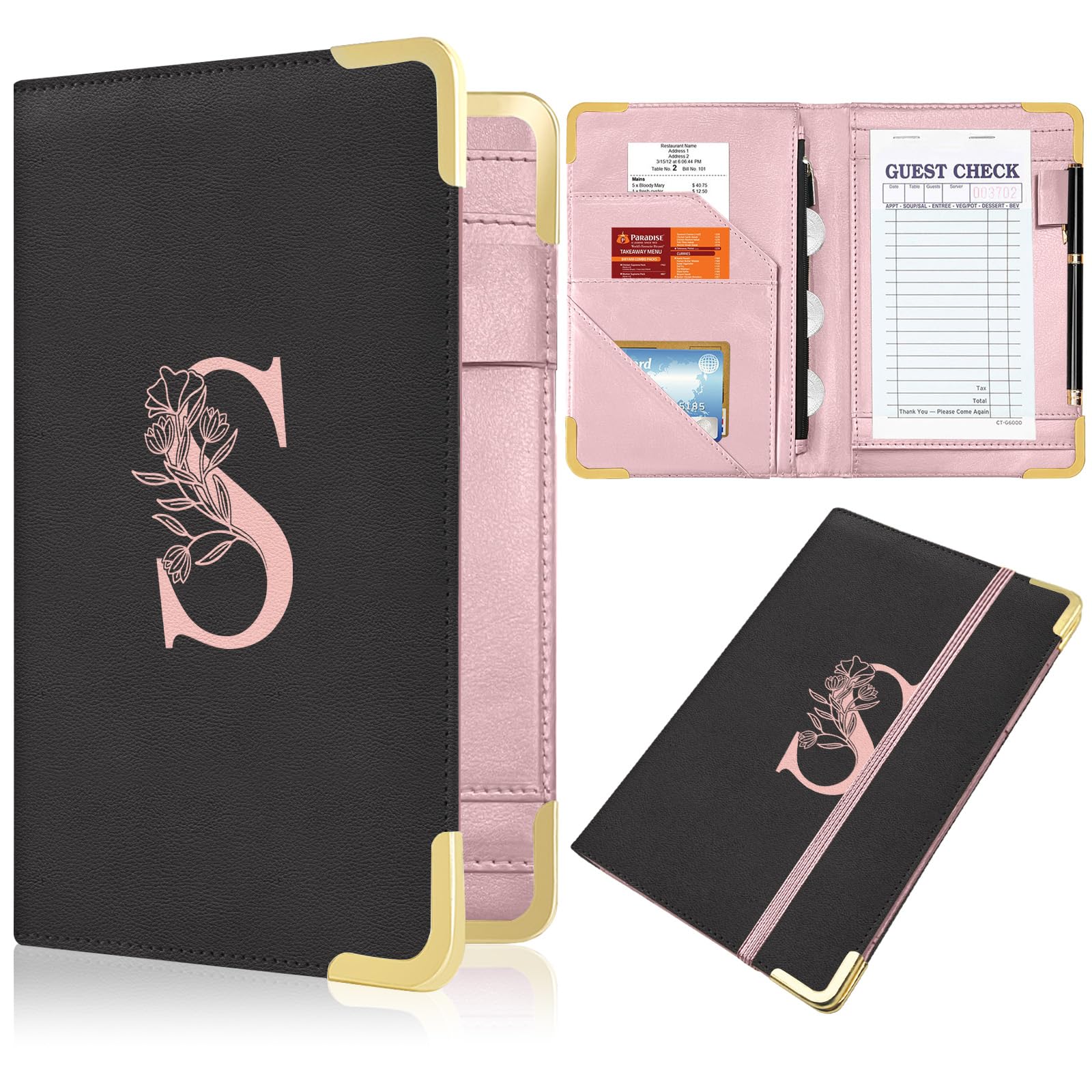 Festures&Details: This serving books was designed with payment variance in mind and includes 7 detail pieces, credit card payment card slot, coupon menu pocket, bill pocket, coin zipper pocket, cash pocket, guest checkbook, and pen holder. server books is suitable, waitress, server, bartender, restaurant, bar, cafe. You can serve your customers better and be highly organized and efficient with waitress books.